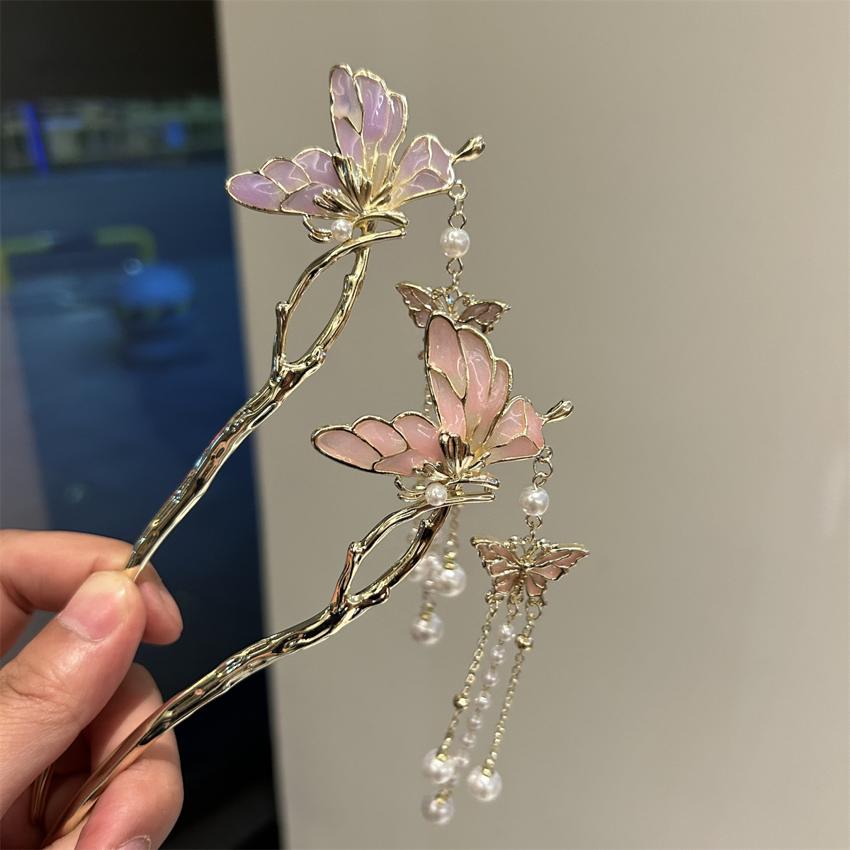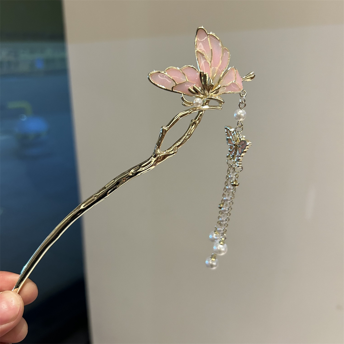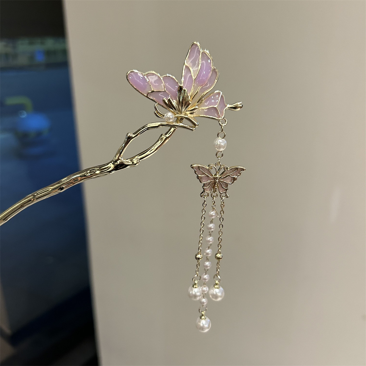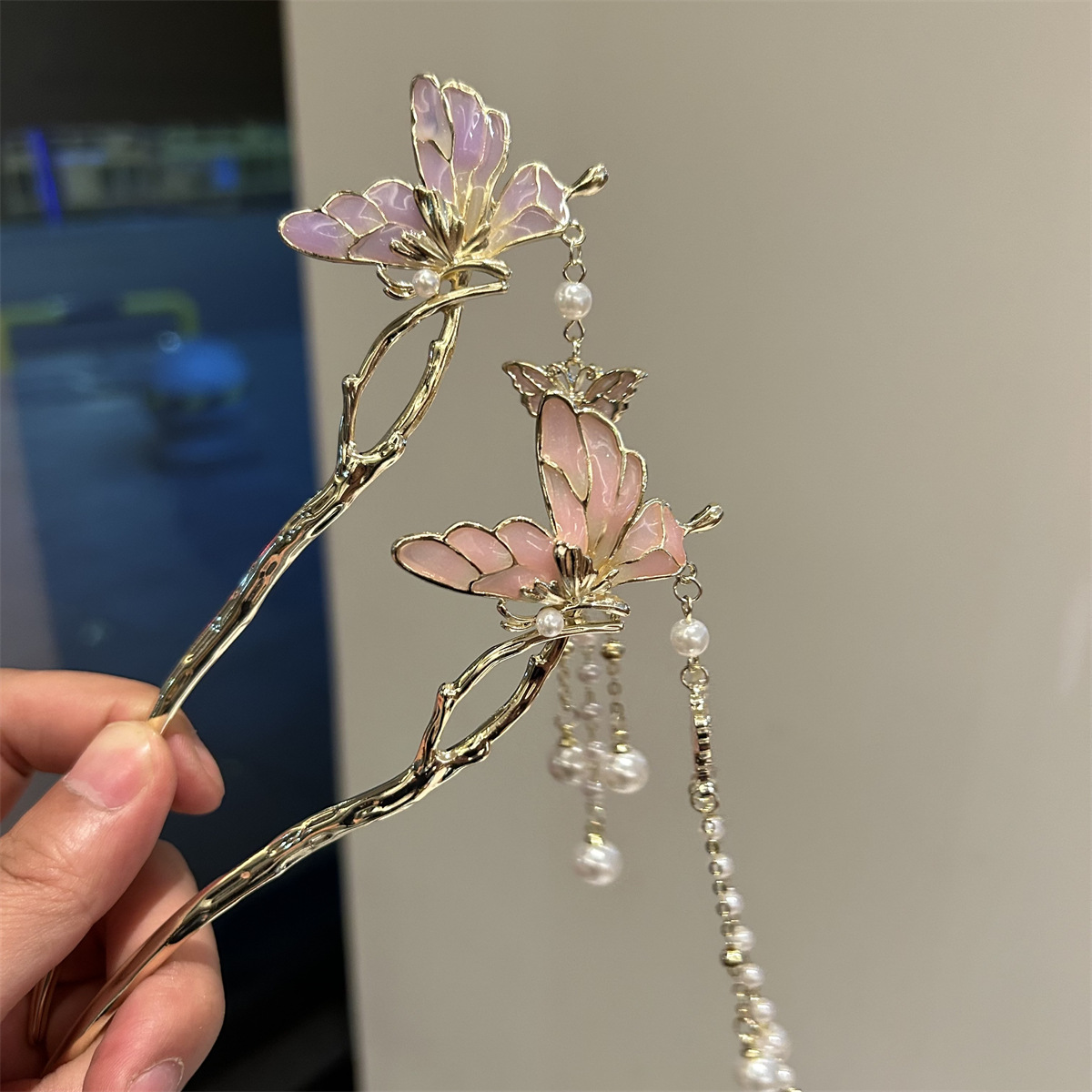古风蝴蝶珠珠流苏发簪女新中式复古国风步摇簪子盘发汉服旗袍头饰