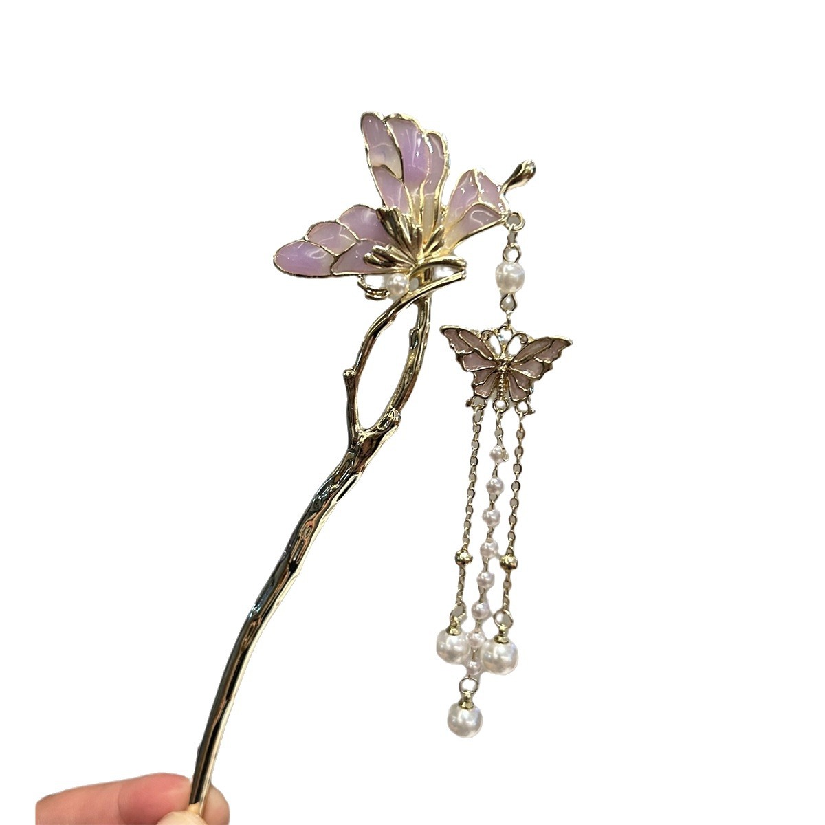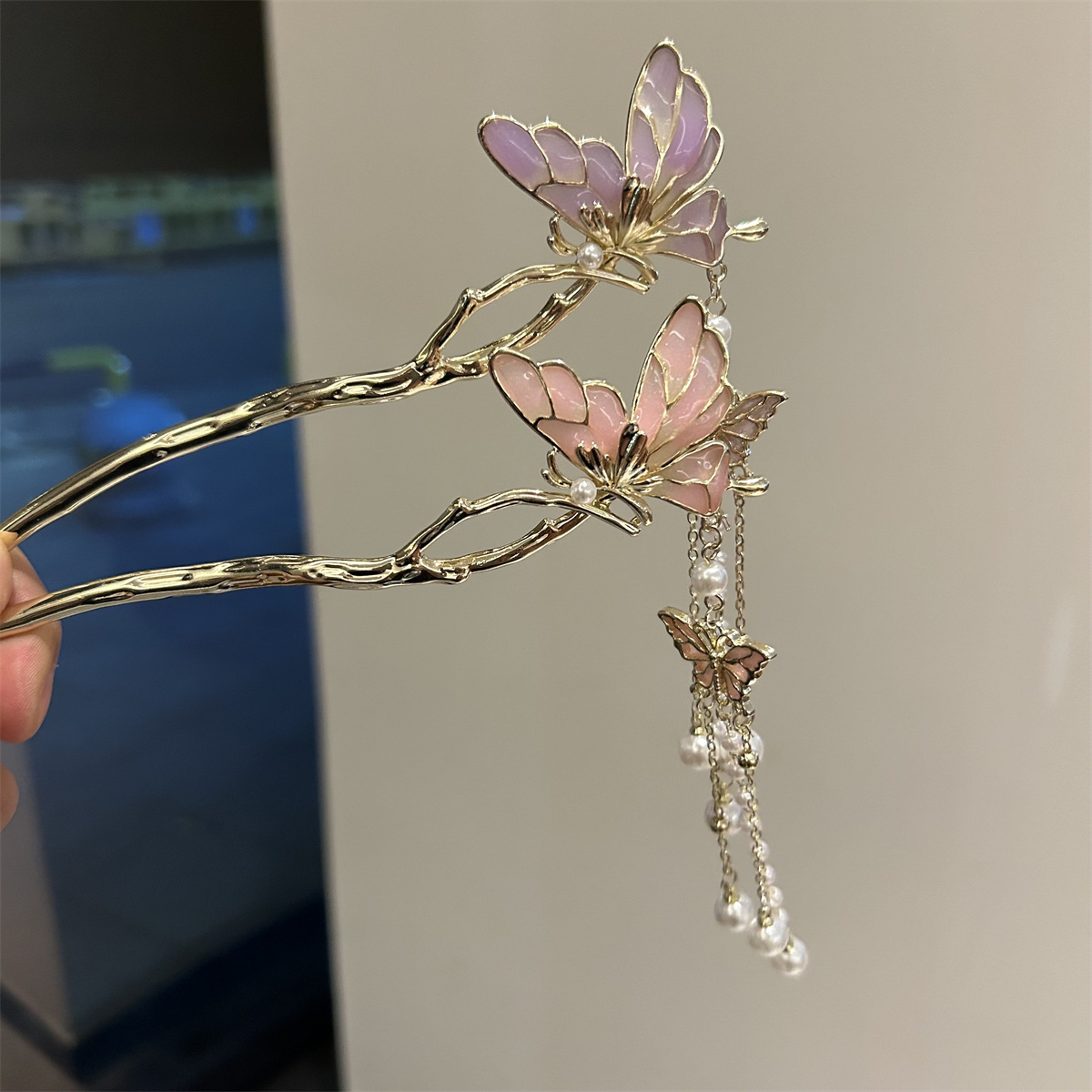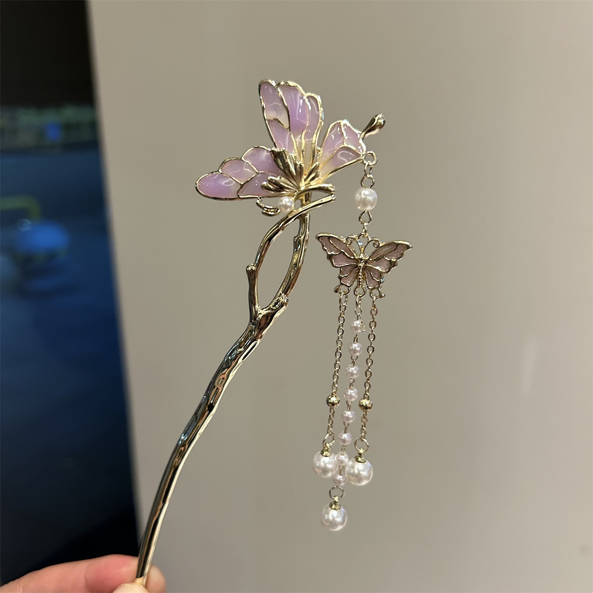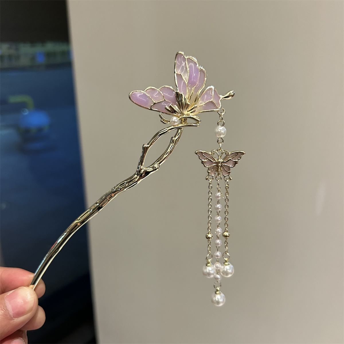 古风蝴蝶珠珠流苏发簪女新中式复古国风步摇簪子盘发汉服旗袍头饰
