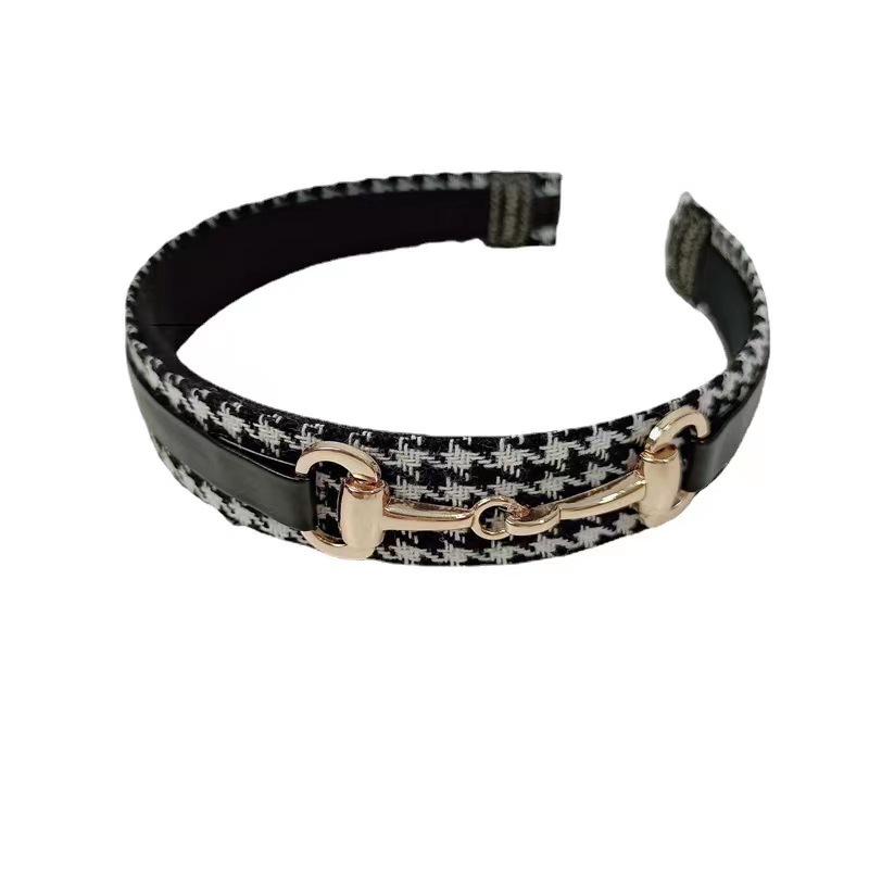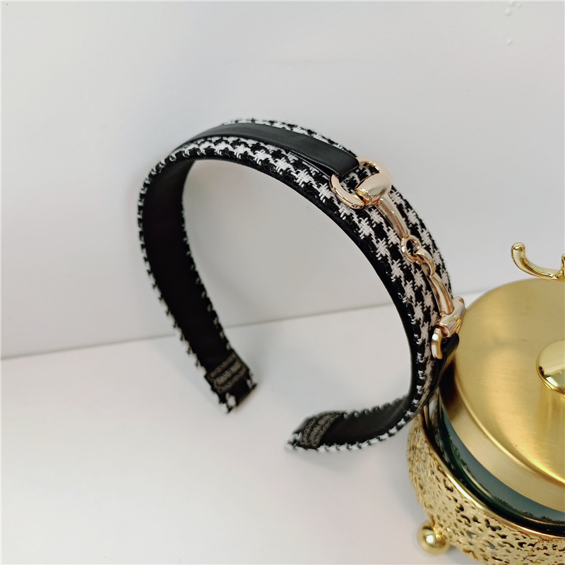 韩国东大门发饰时尚格纹金属设计链条复古小香风发箍潮头箍头饰女