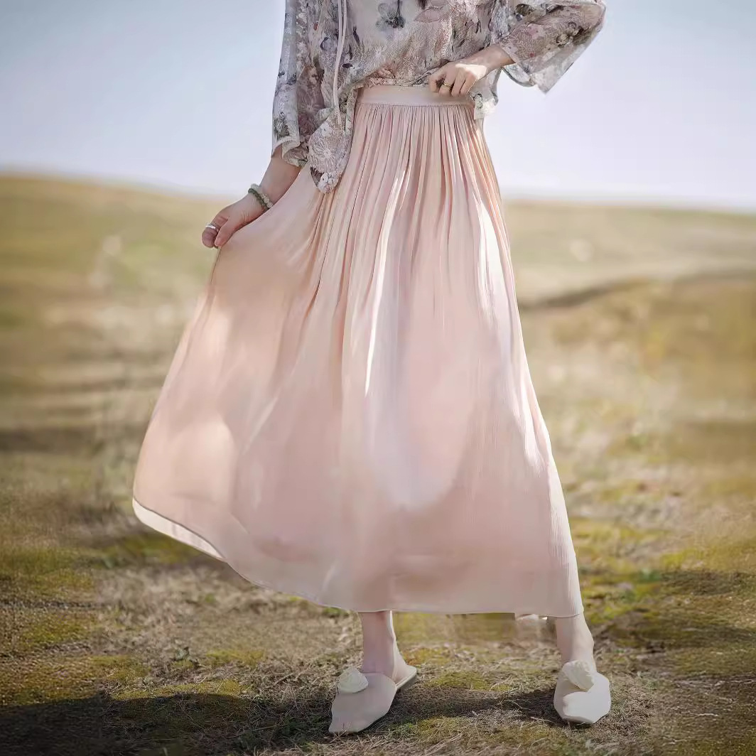 |波光半裙-淡粉|宽松高腰百褶裙新款垂坠感半身裙