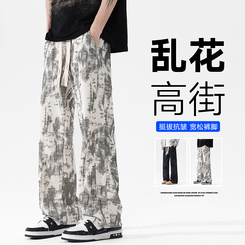 25新品潮牌裤男春季重磅美式高街运动裤春秋款满印潮牌垂感直筒休