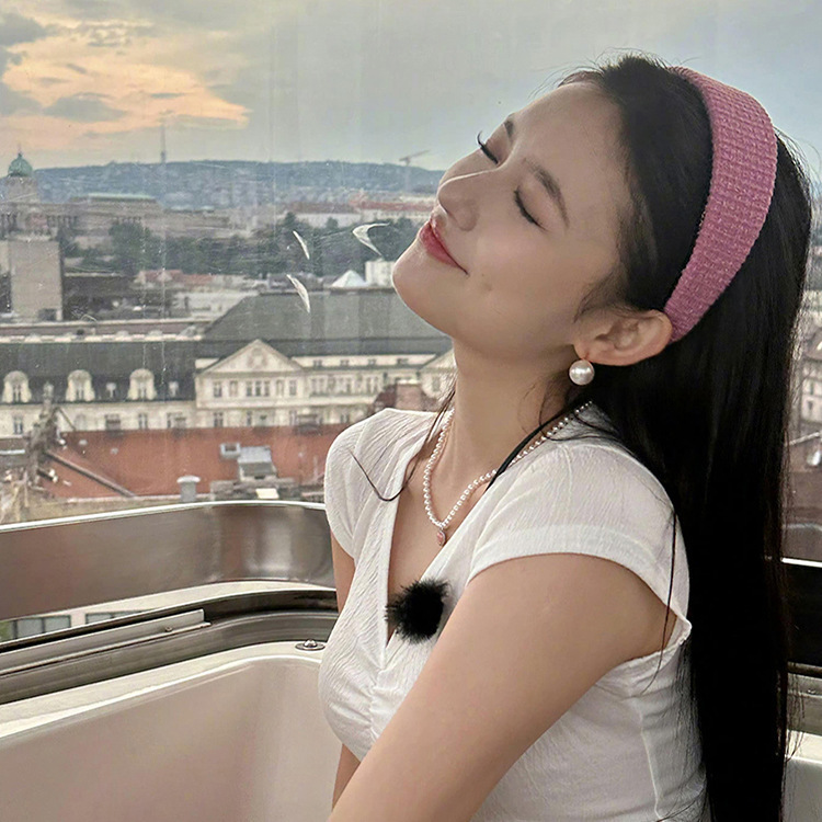 粉色编织发箍女法式复古高颅顶压发卡宽边头箍发饰