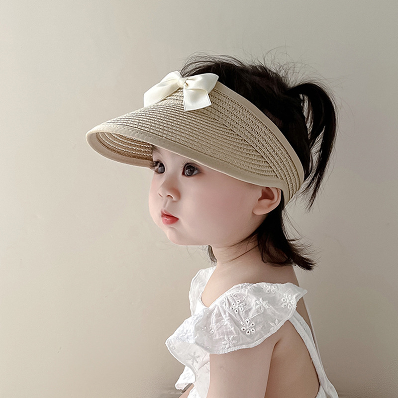 ins韩系女宝宝帽子夏季薄款遮阳防晒蝴蝶结空顶帽女童大檐太阳帽