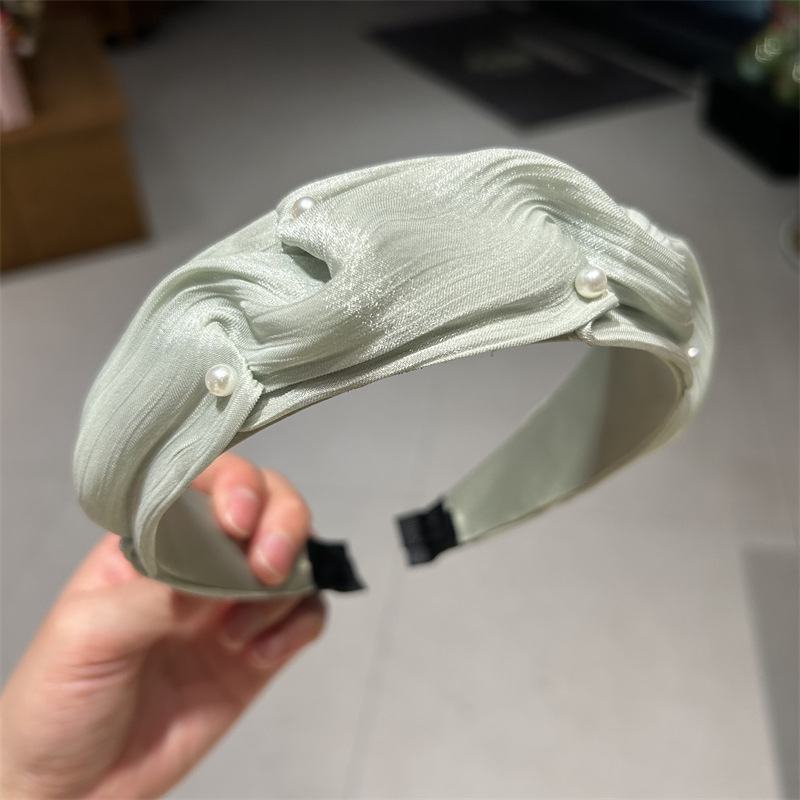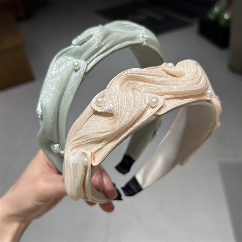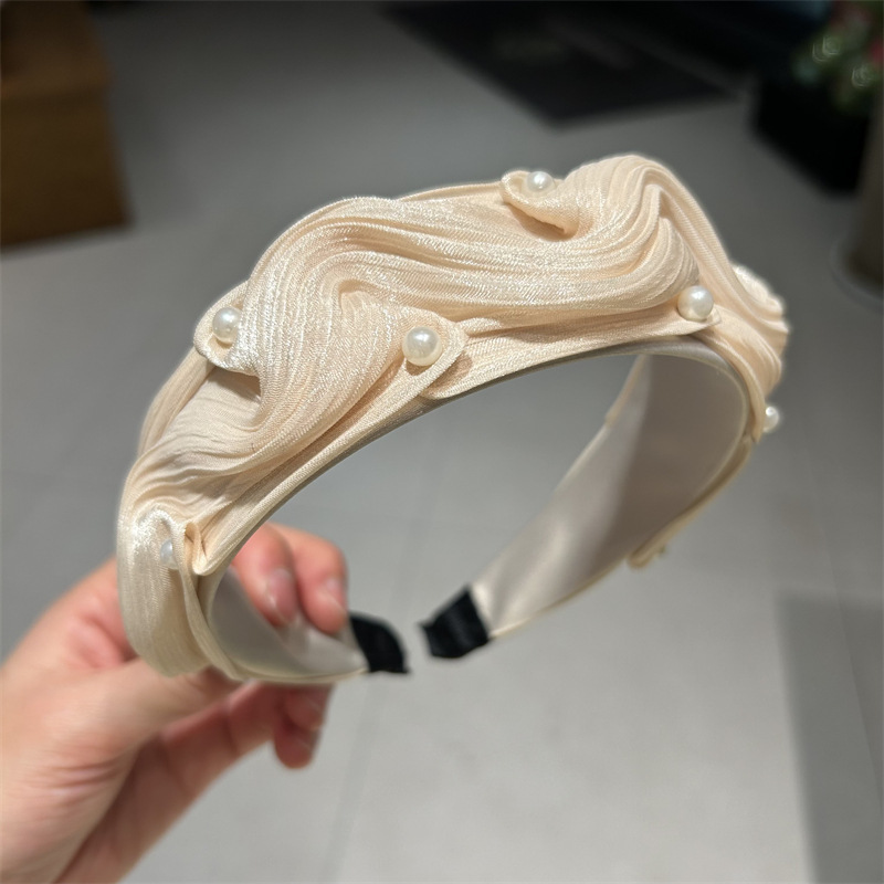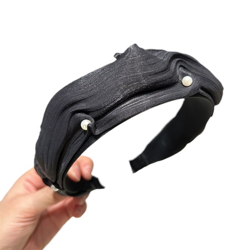 韩国时尚发饰轻盈丝光褶皱肌理设计感珍珠宽边发箍气质高颅顶头箍