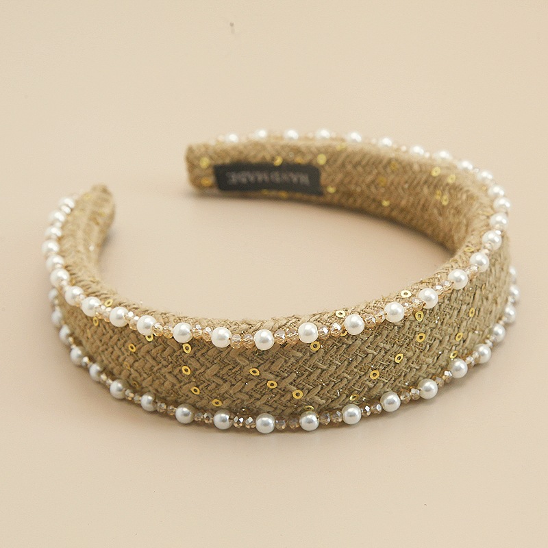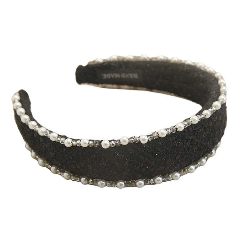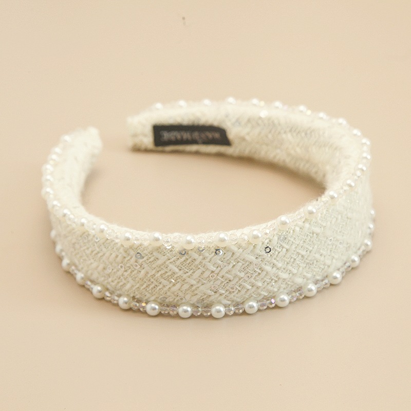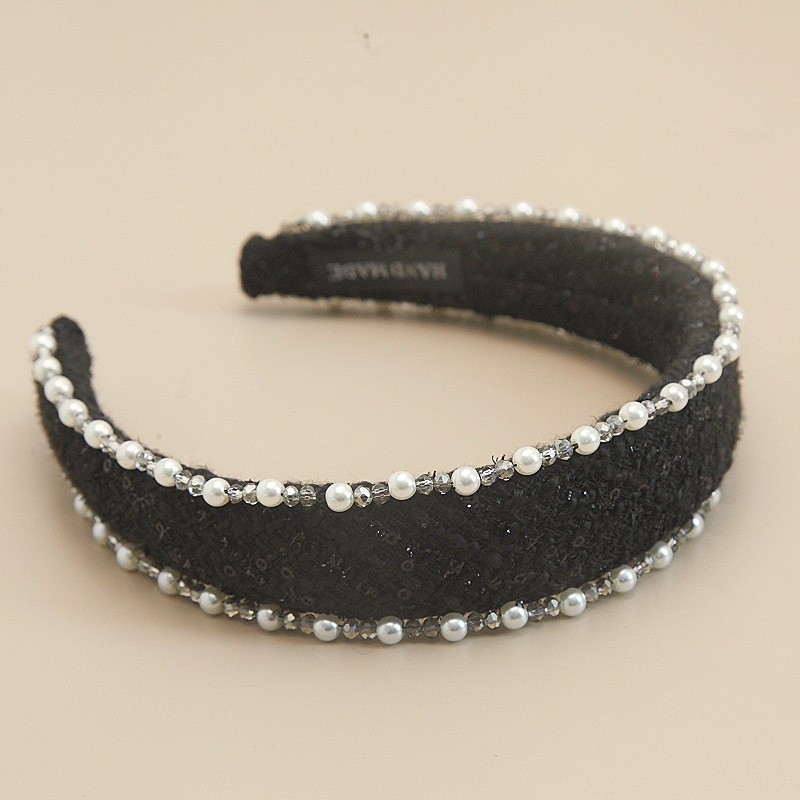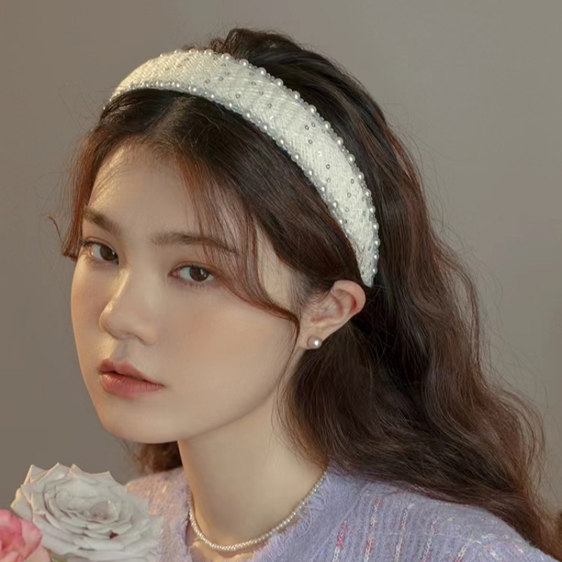 法式复古针织毛线宽边珍珠发箍气质高颅顶压发头箍轻奢高级感发饰