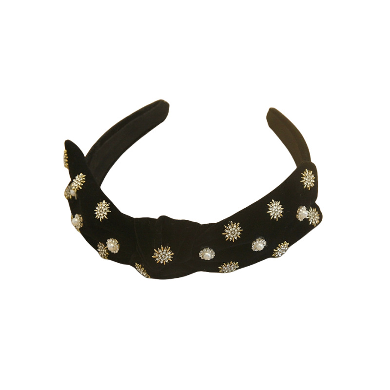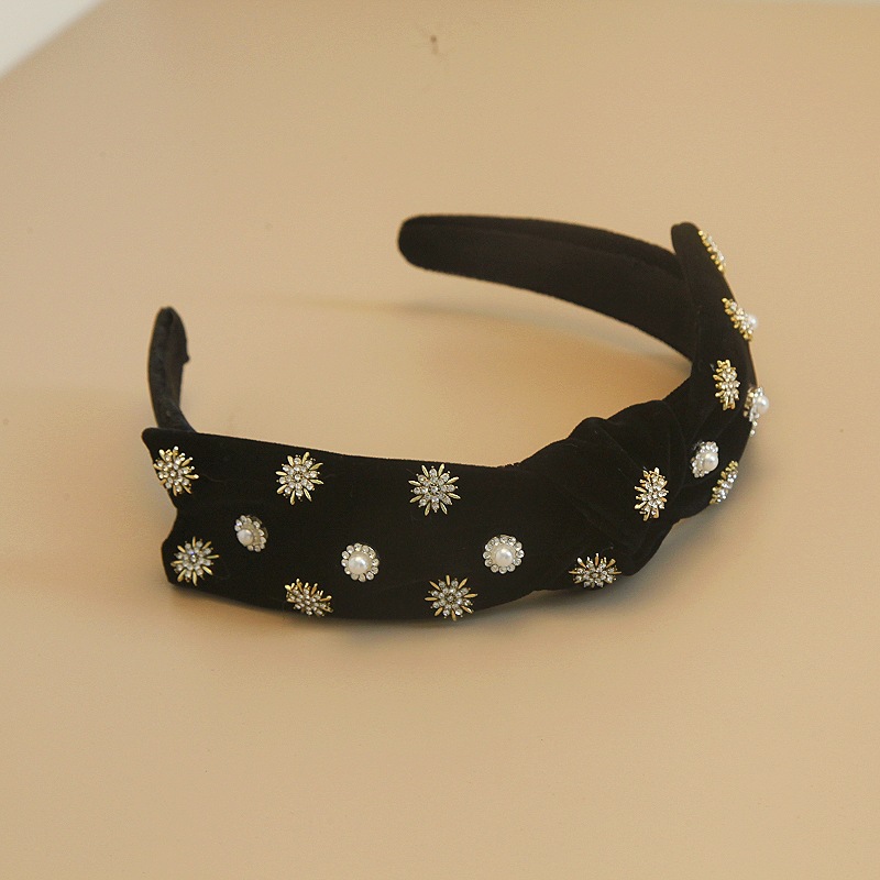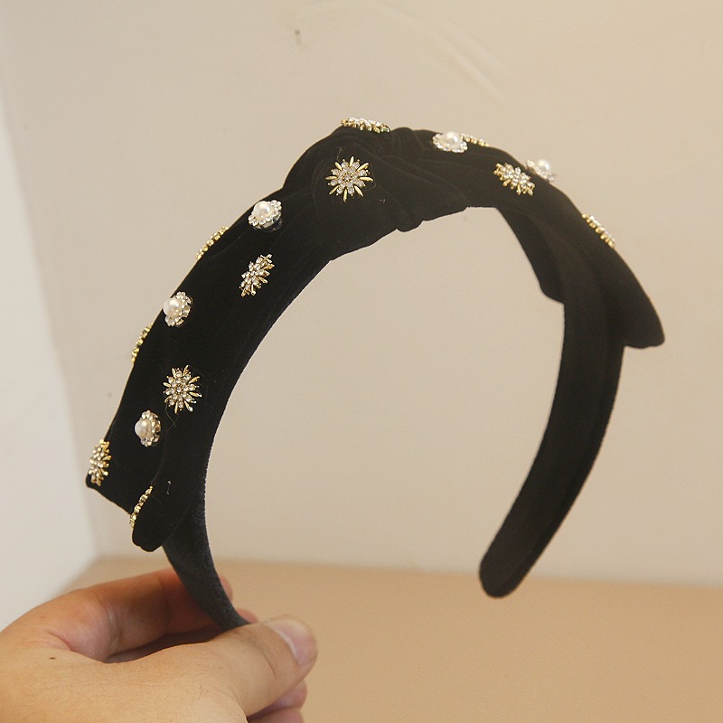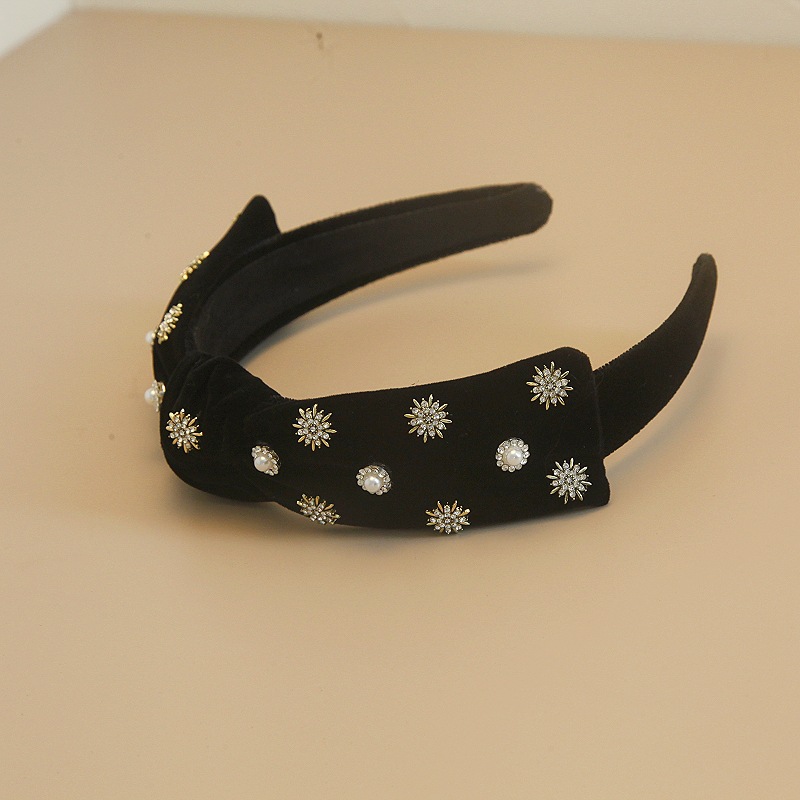 丝绒珍珠头箍性感黑色蝴蝶结雪花闪钻发箍网红ins外出发饰头饰女