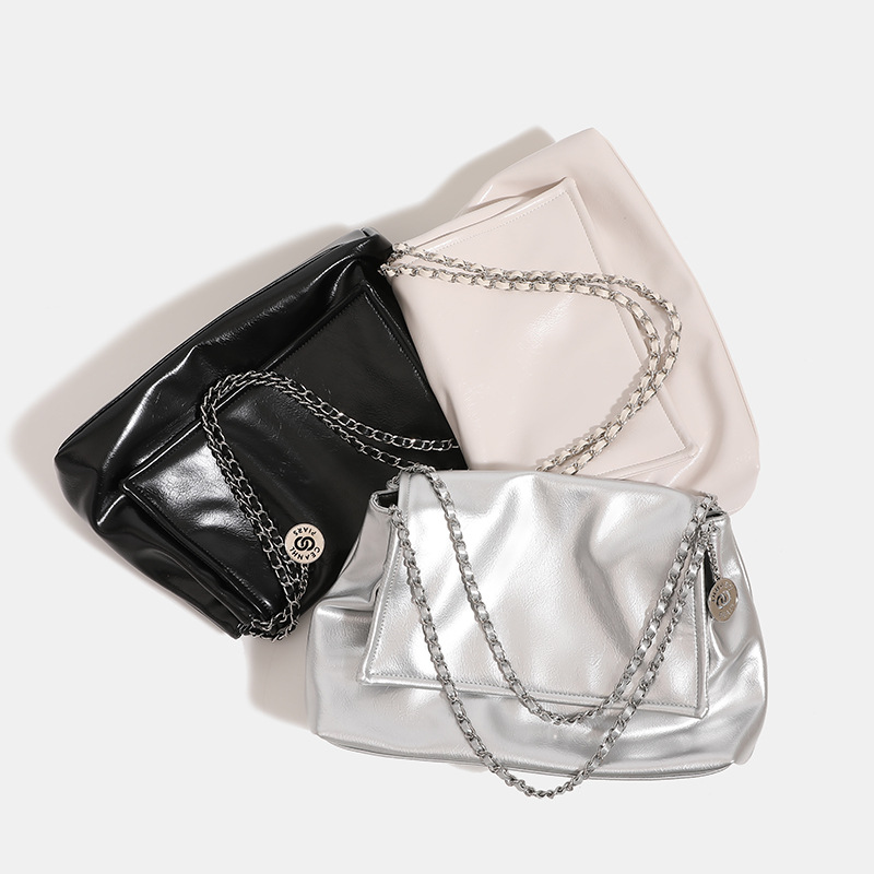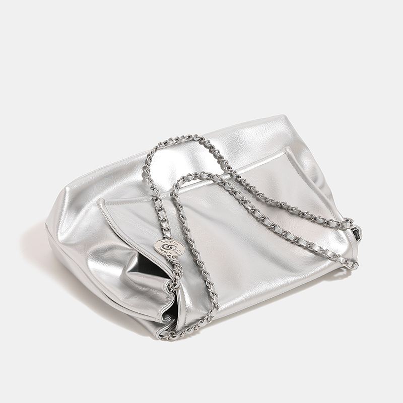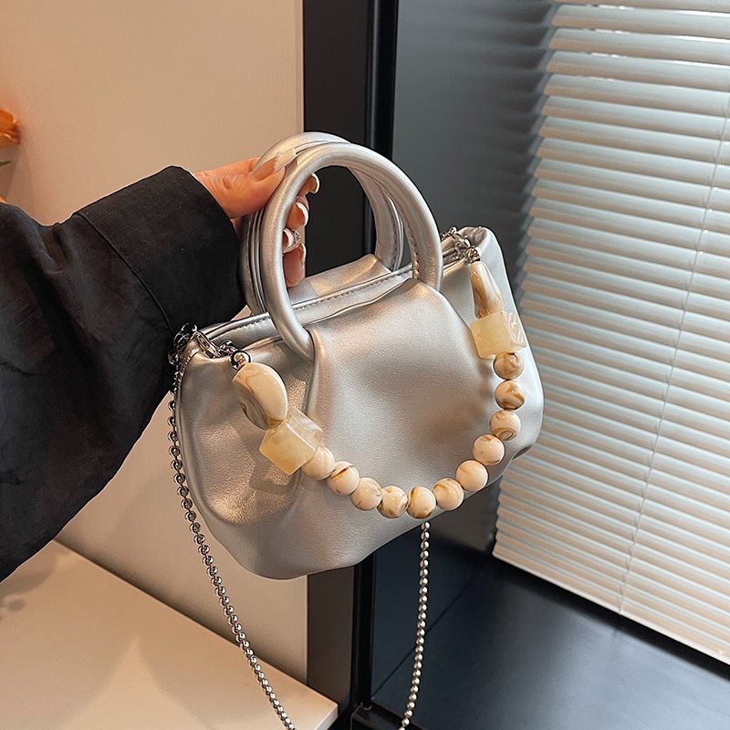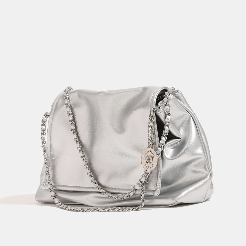 感洋气小众银色包包女新款百搭链条斜挎包超火手提小拎包