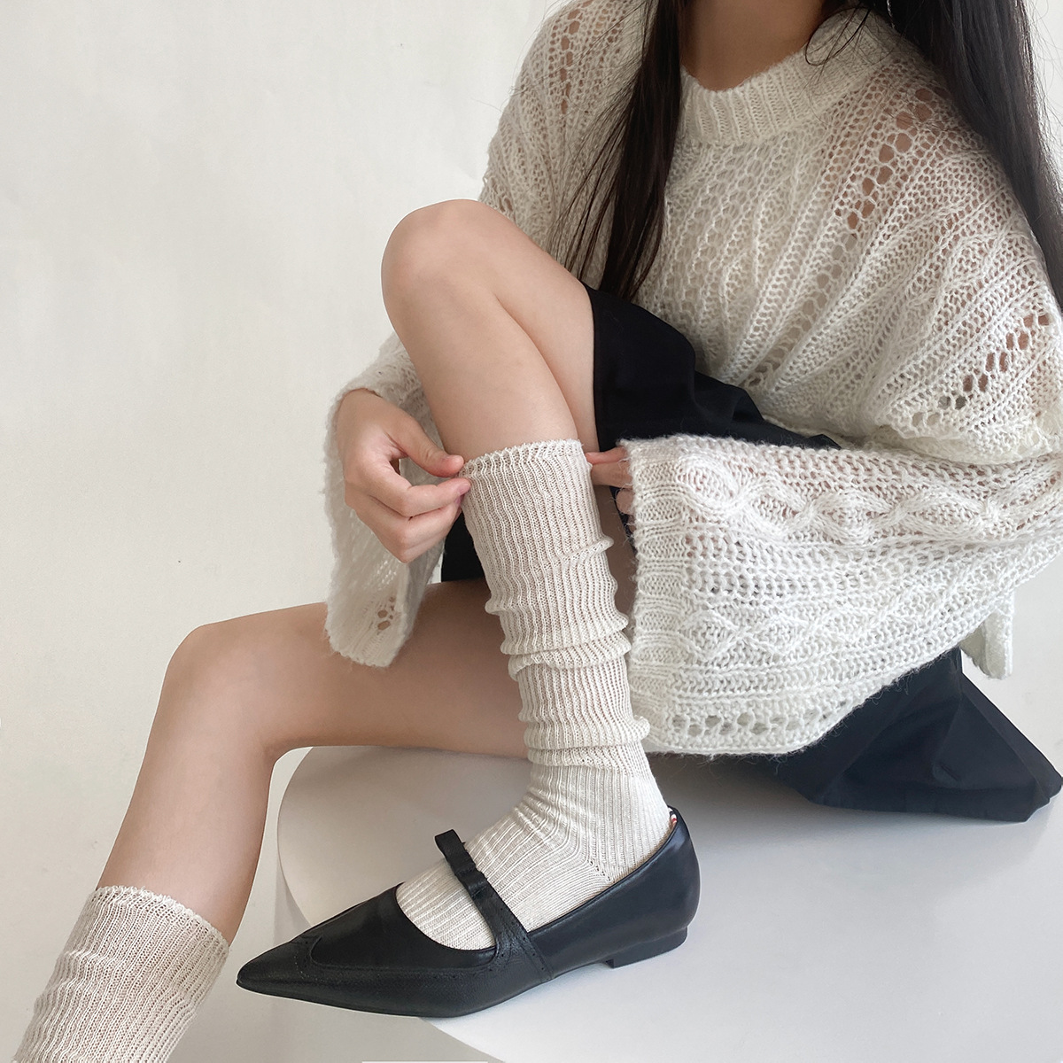 袜子女木耳边JK中筒袜麻花韩版纯色女式棉透气花边袜镂空网眼袜子