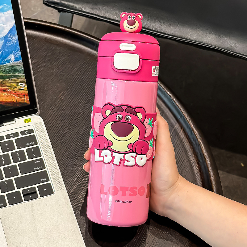 草莓熊儿童保温杯 女孩食品级316吸管双饮小学生上学专用两用水壶