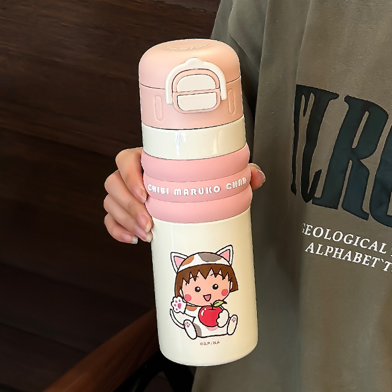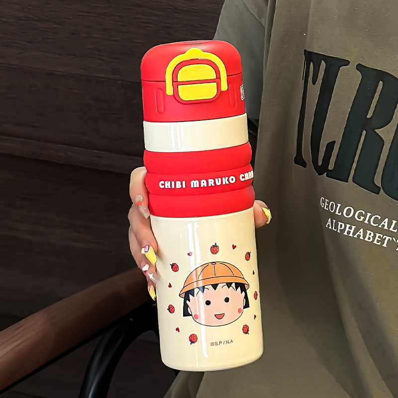 草莓熊小丸子新款儿童保温杯小学生水杯上学专用女孩吸管杯子
