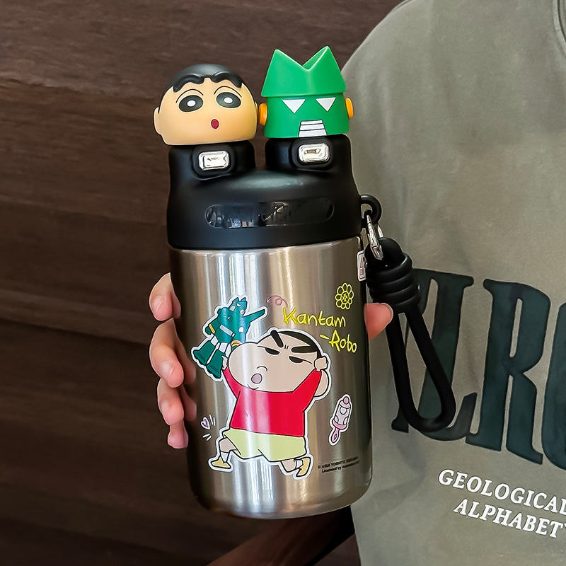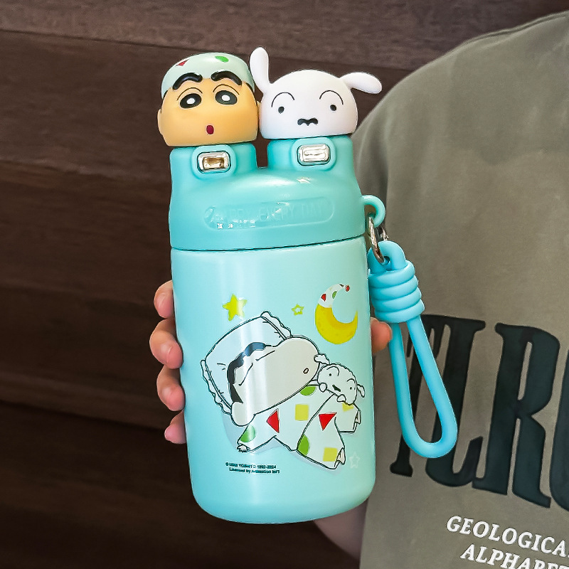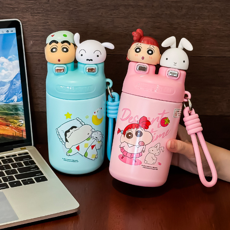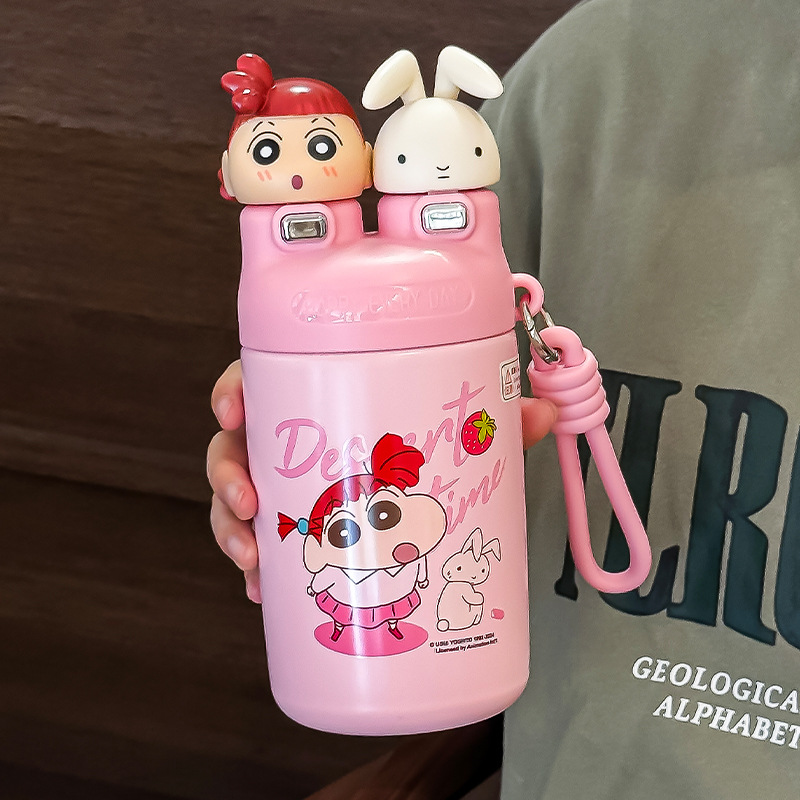 蜡笔小新保温杯儿童新款双饮水杯子带吸管可爱水壶女生高颜值