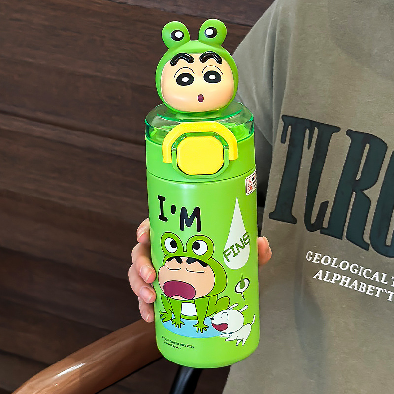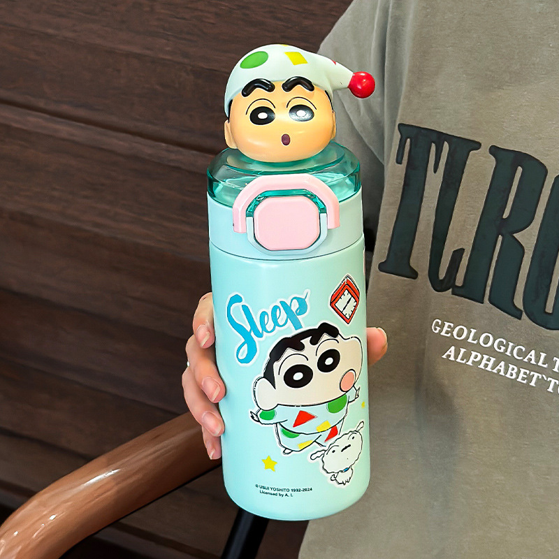 蜡笔小新保温杯新款水杯女高颜值不锈钢卡通杯学生可爱吸管杯