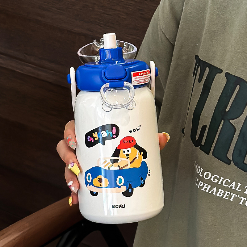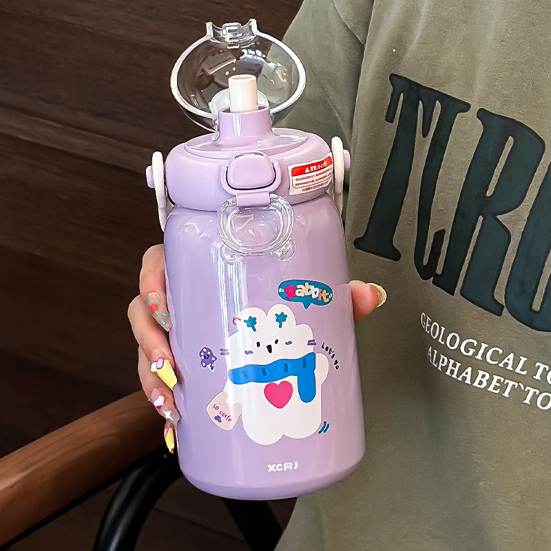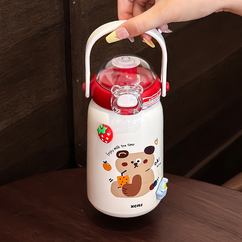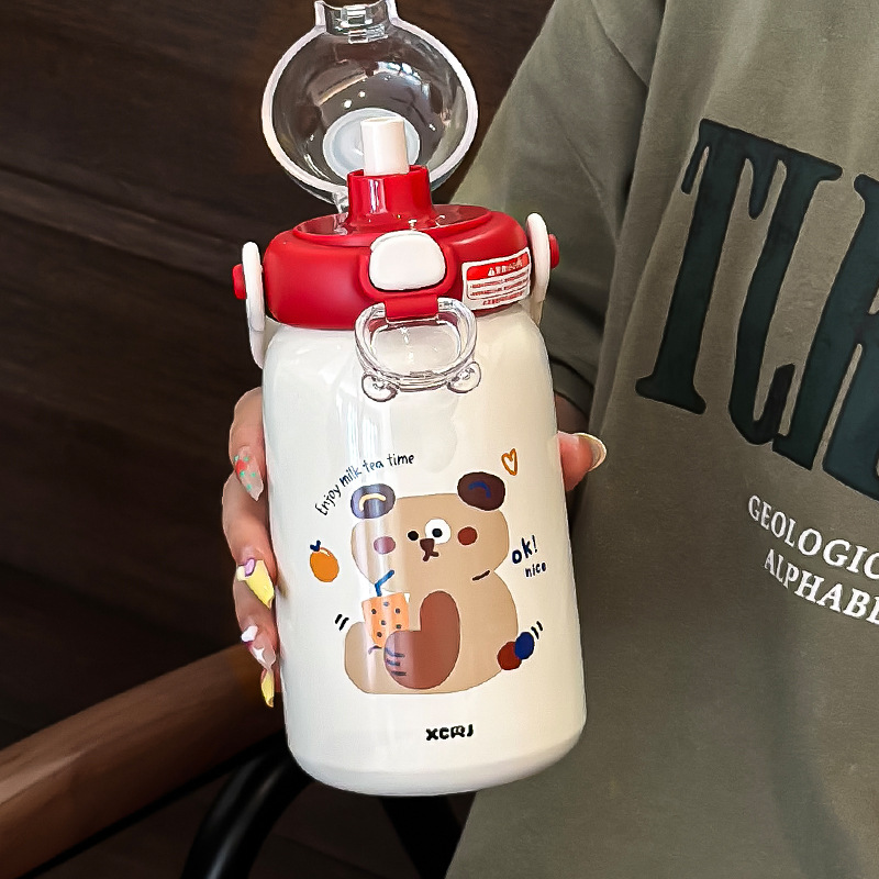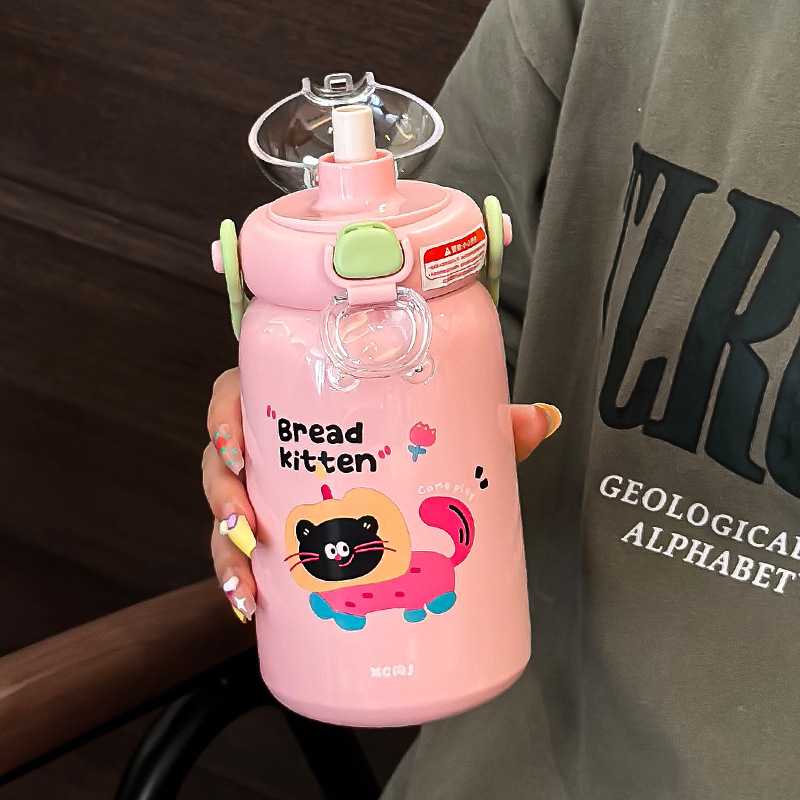 卡通吸管保温杯女生儿童学生韩版可爱高颜值316L不锈钢双饮水杯子