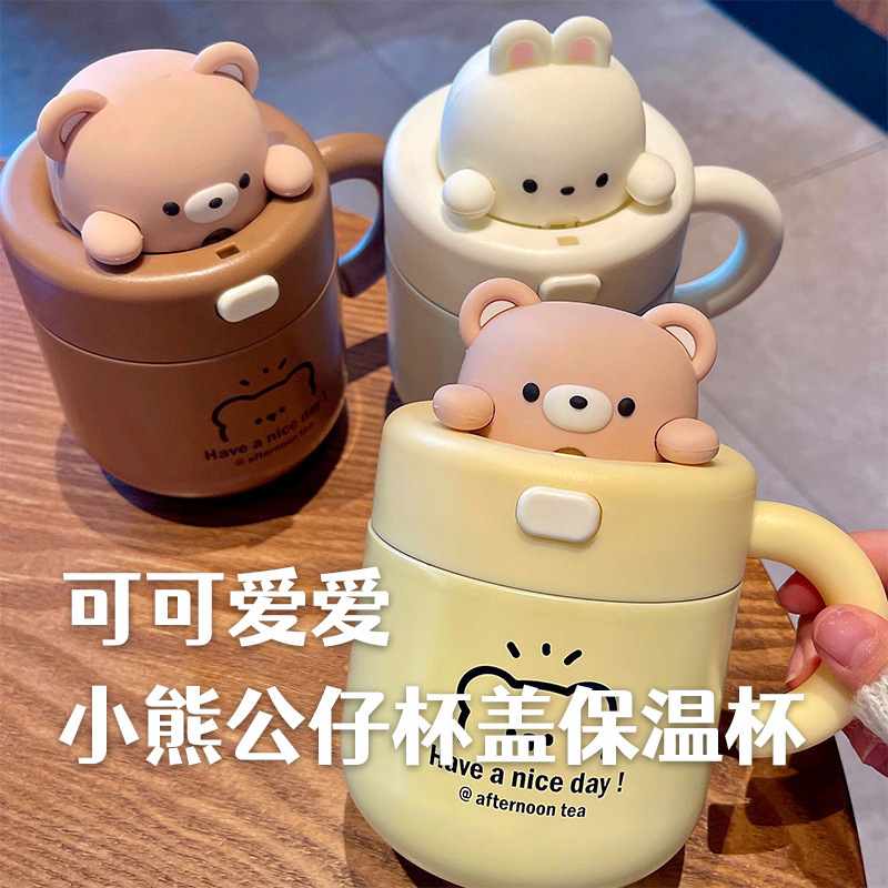小熊马克杯带盖女生情侣家用保温杯高颜值早餐杯公仔办公杯大容量