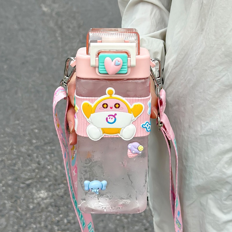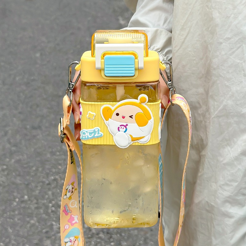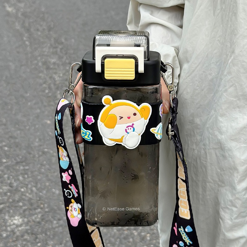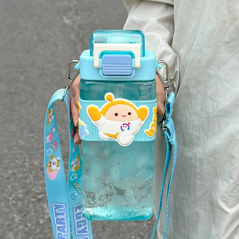 蛋仔派对儿童卡通方形Tritan双饮杯学生无异味吸管直饮提绳水杯