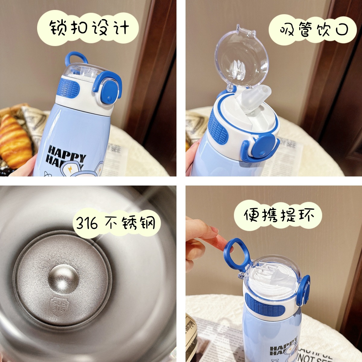 儿童保温杯316不锈钢高颜值吸管杯可爱学生卡通送礼便携上学杯子