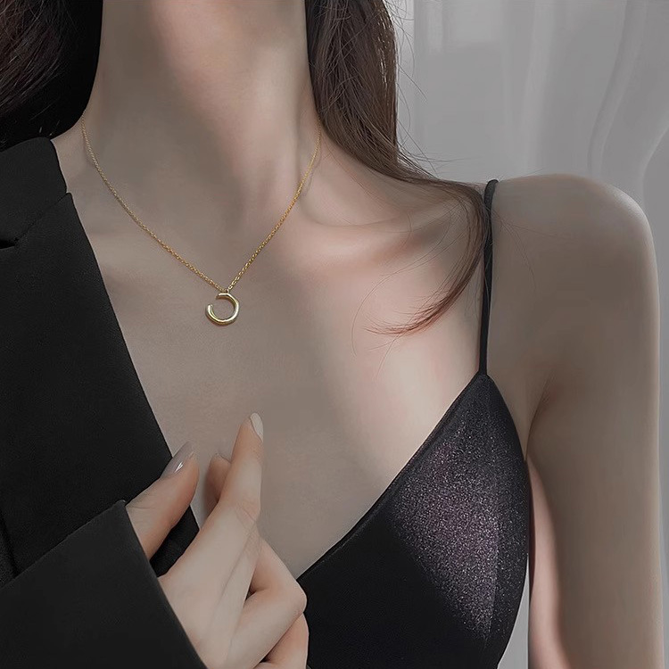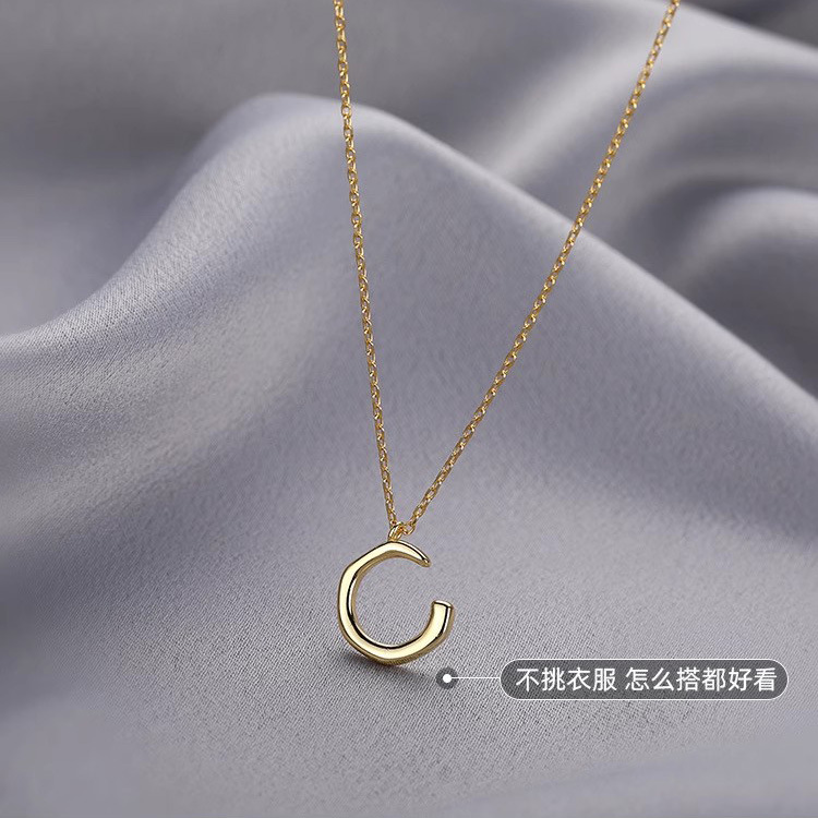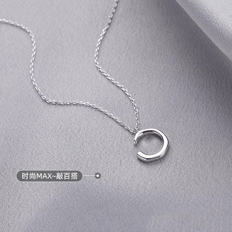 s925纯银不规则月牙字母项链女个性C形十字链 网红风异形锁骨链潮