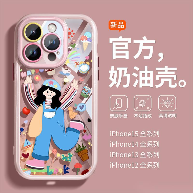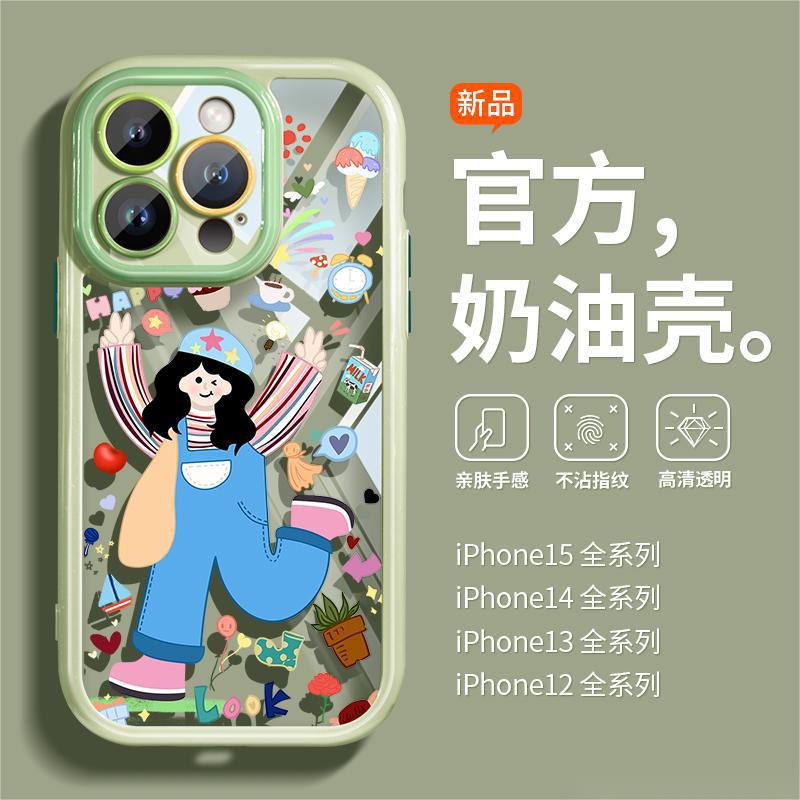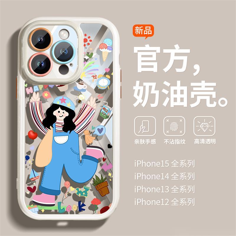 适用于苹果14手机壳小香风全包招手女孩硅胶小众14保护壳现代13