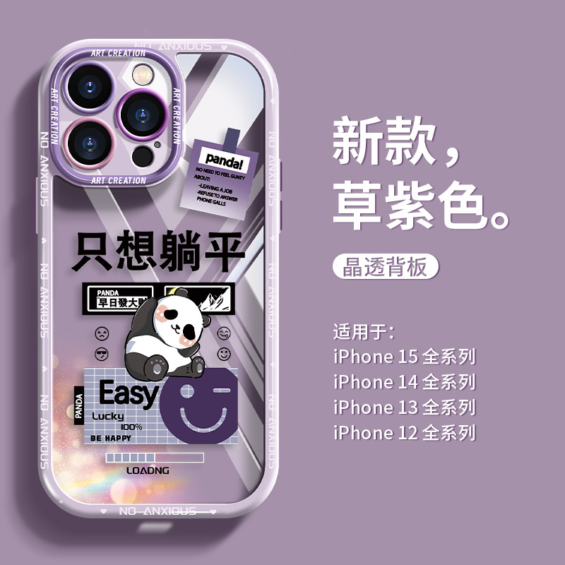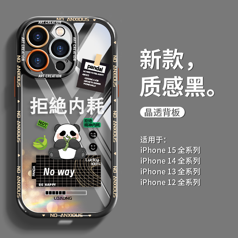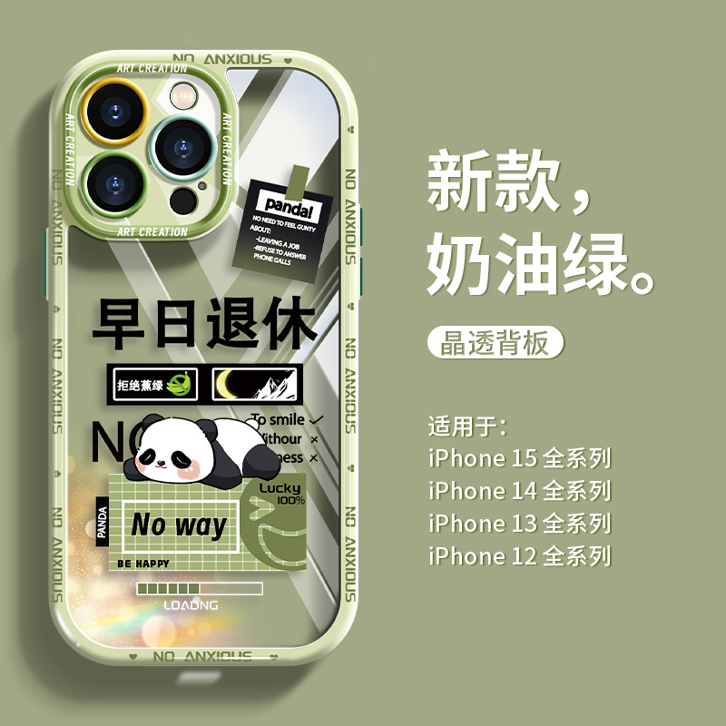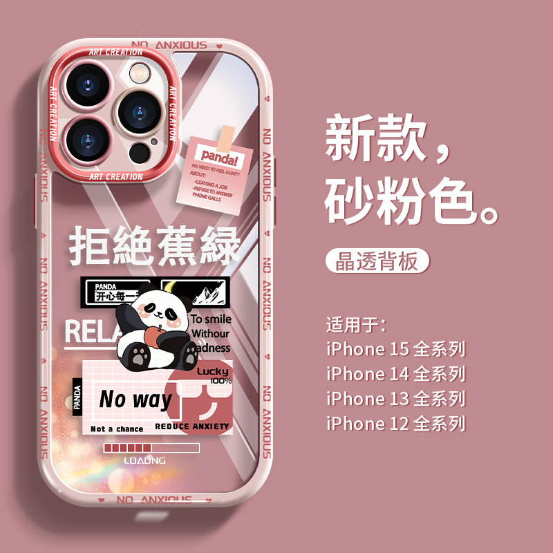 适用于苹果12手机壳可爱全包熊猫15硅胶少女心iPhone14保护壳时尚