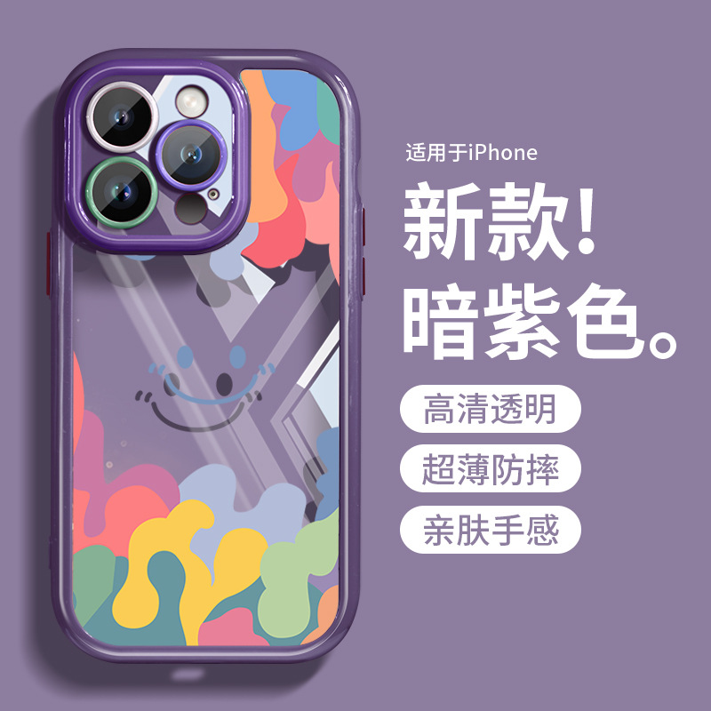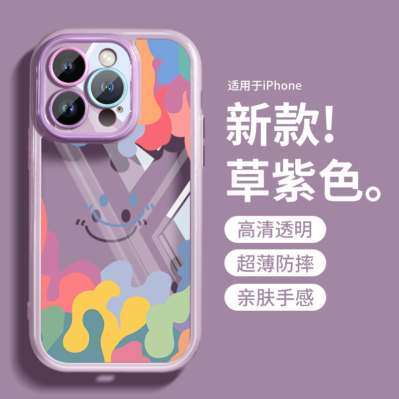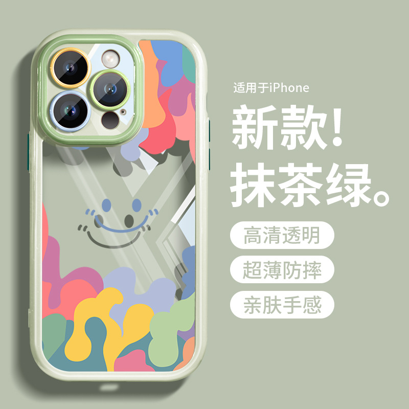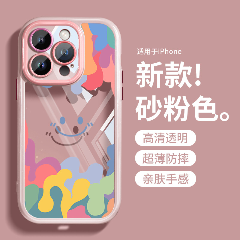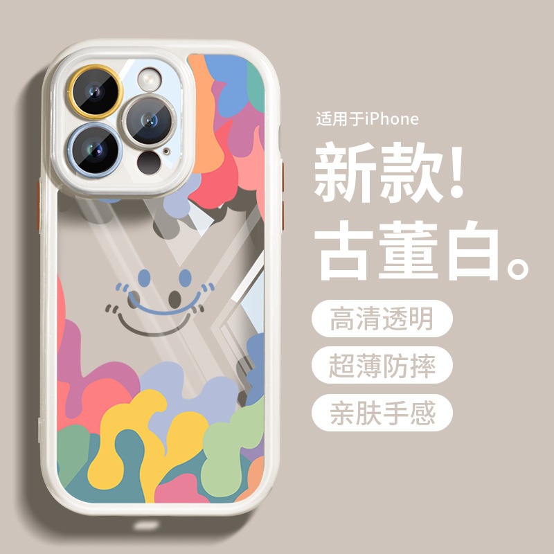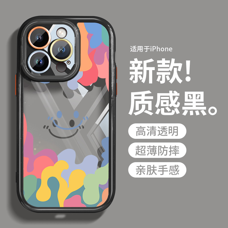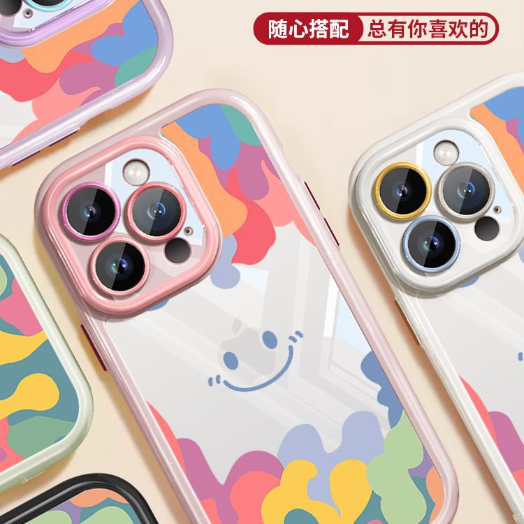 适用于苹果14手机壳夏季全包硅胶简约14保护壳笑脸卡通13新品