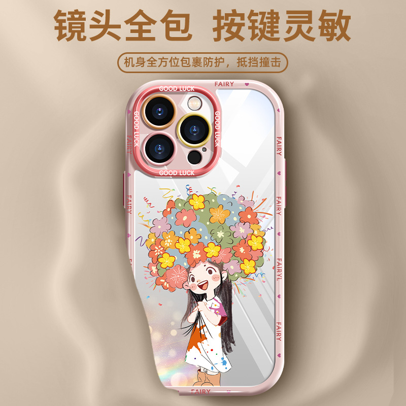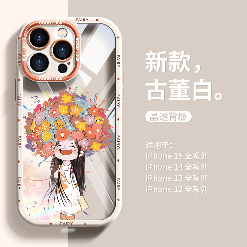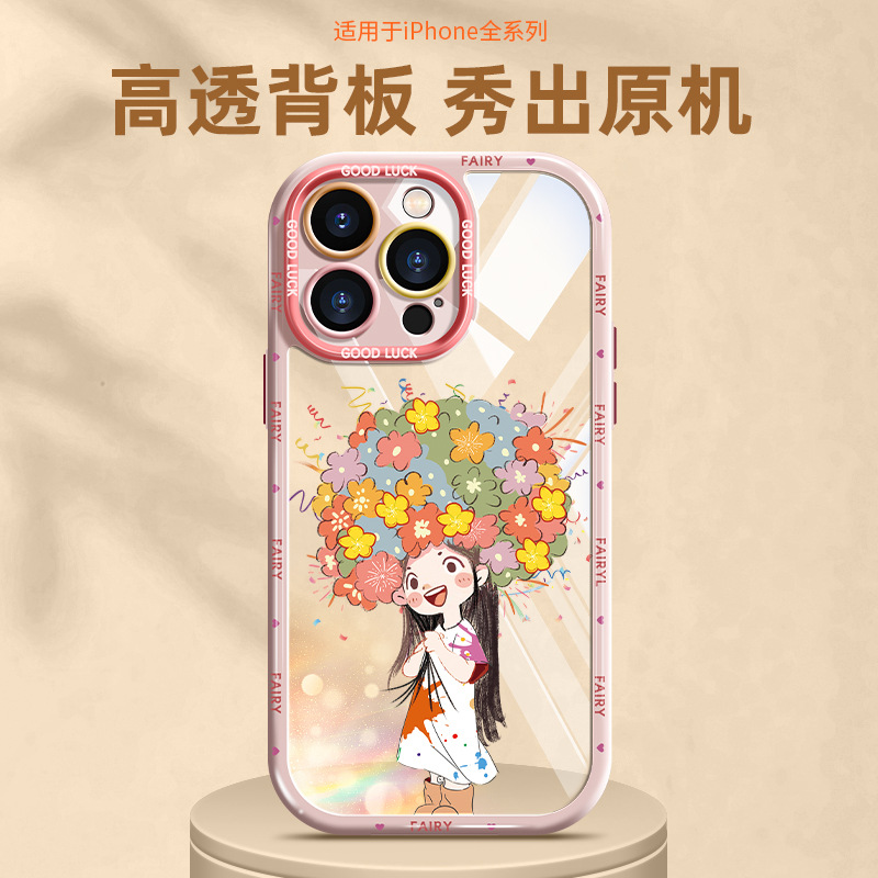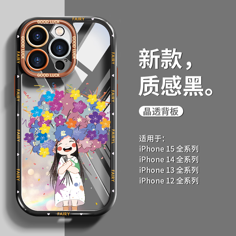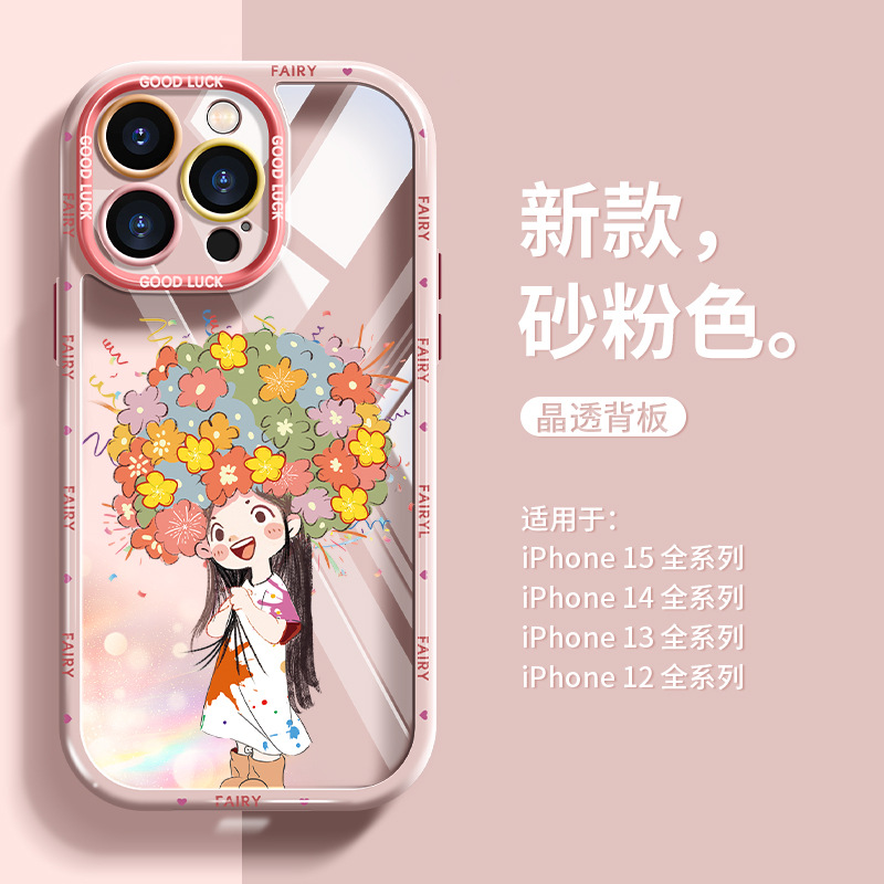 适用苹果15手机壳15Promax新款14透明13女11烟花女孩