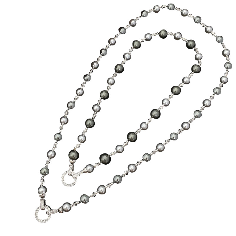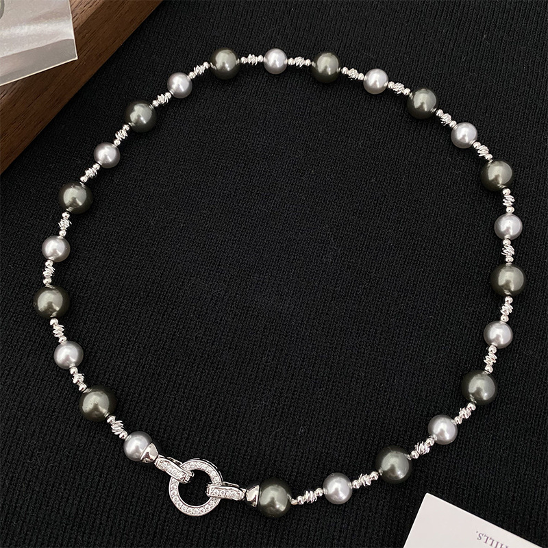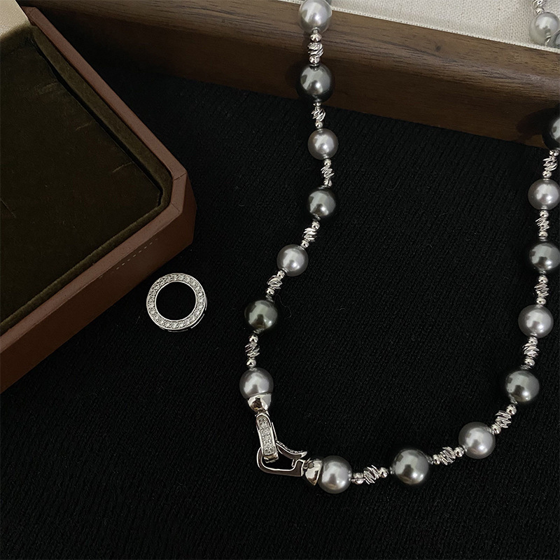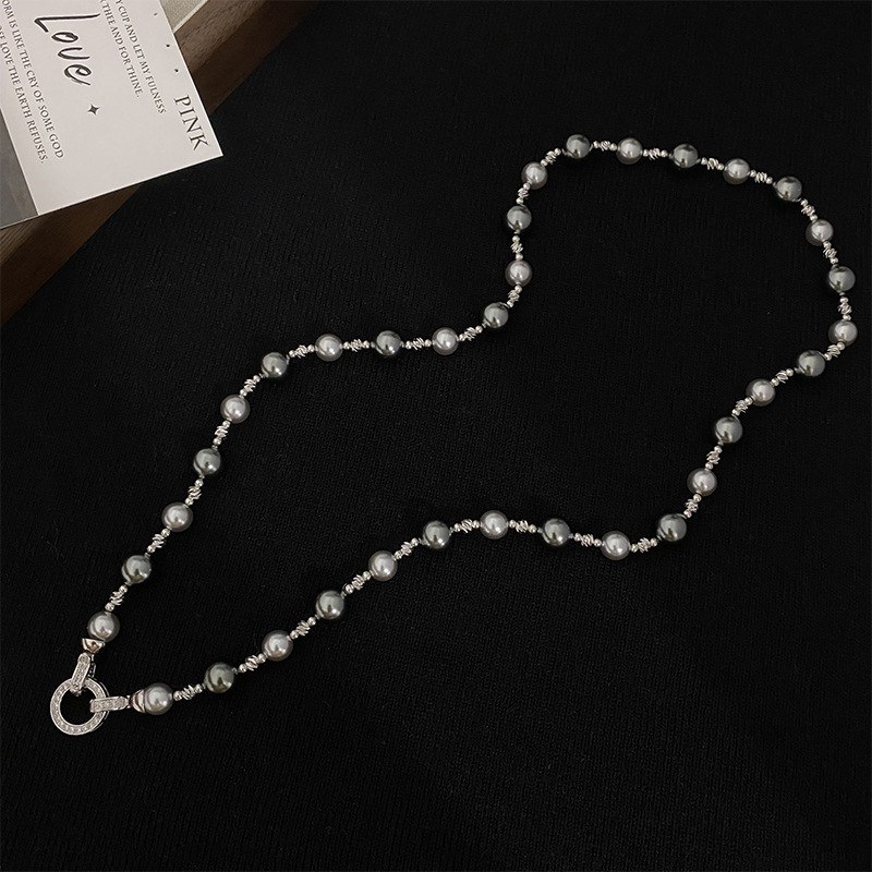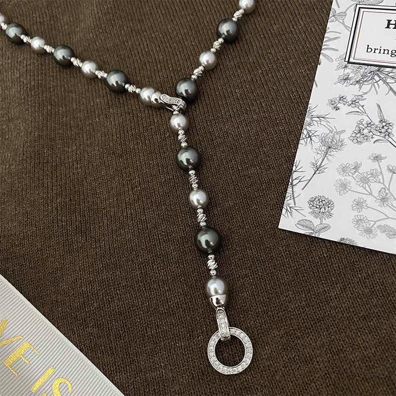 法式复古施家大溪地混彩珍珠项链女时尚轻奢百搭小众颈链毛衣链潮