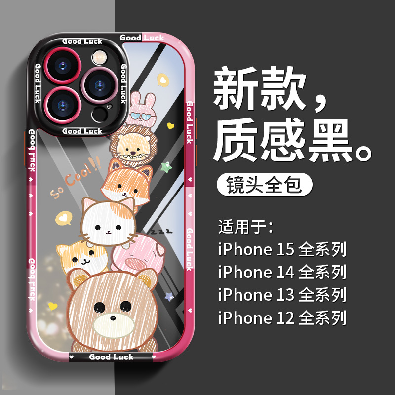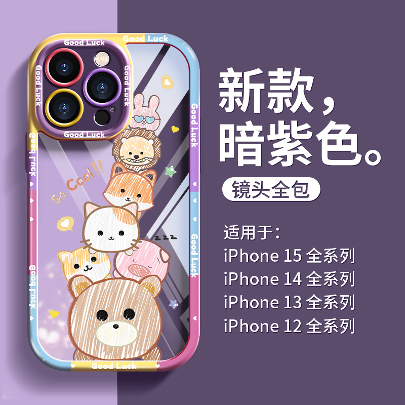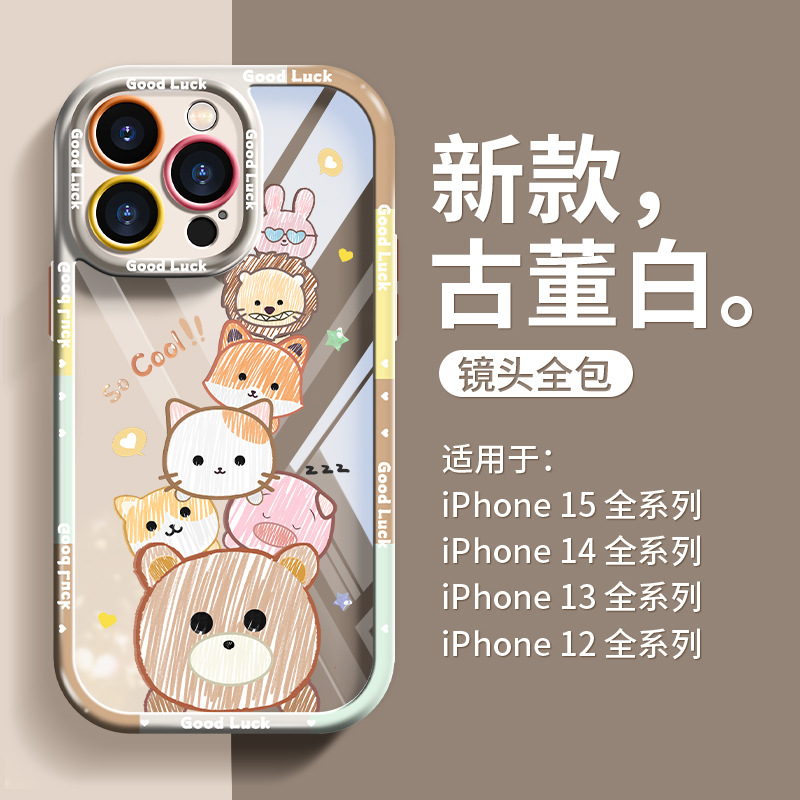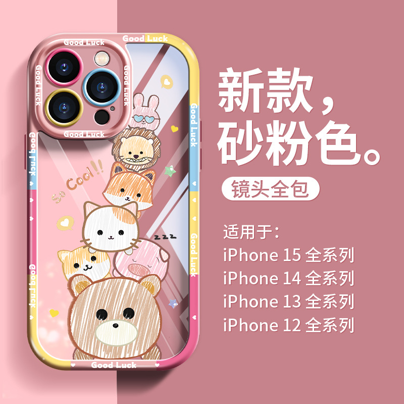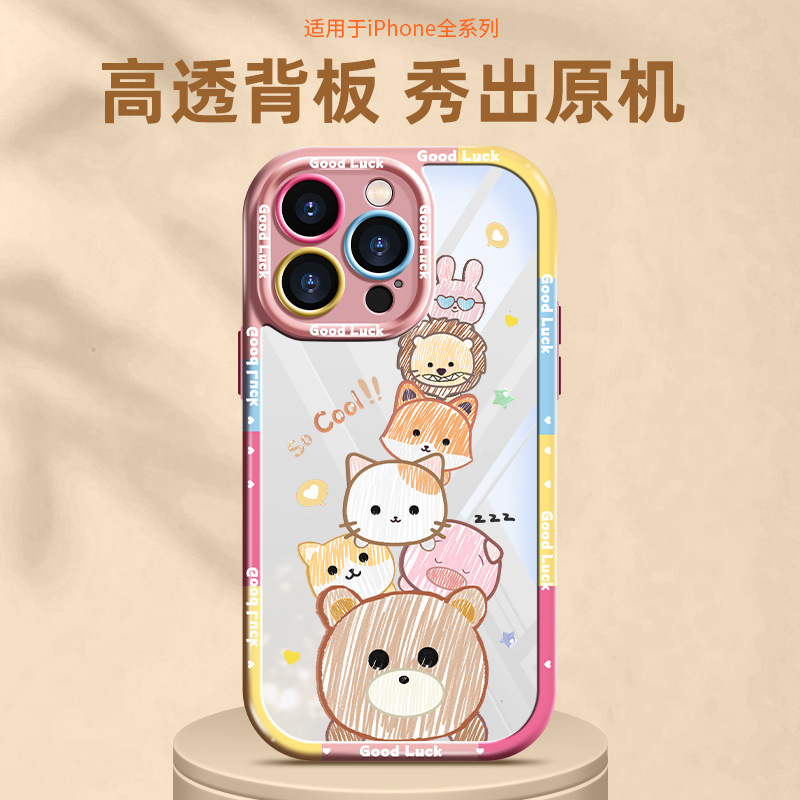 动物叠叠乐适用iphone15Pro手机壳新款苹果13透明可爱14Promax全