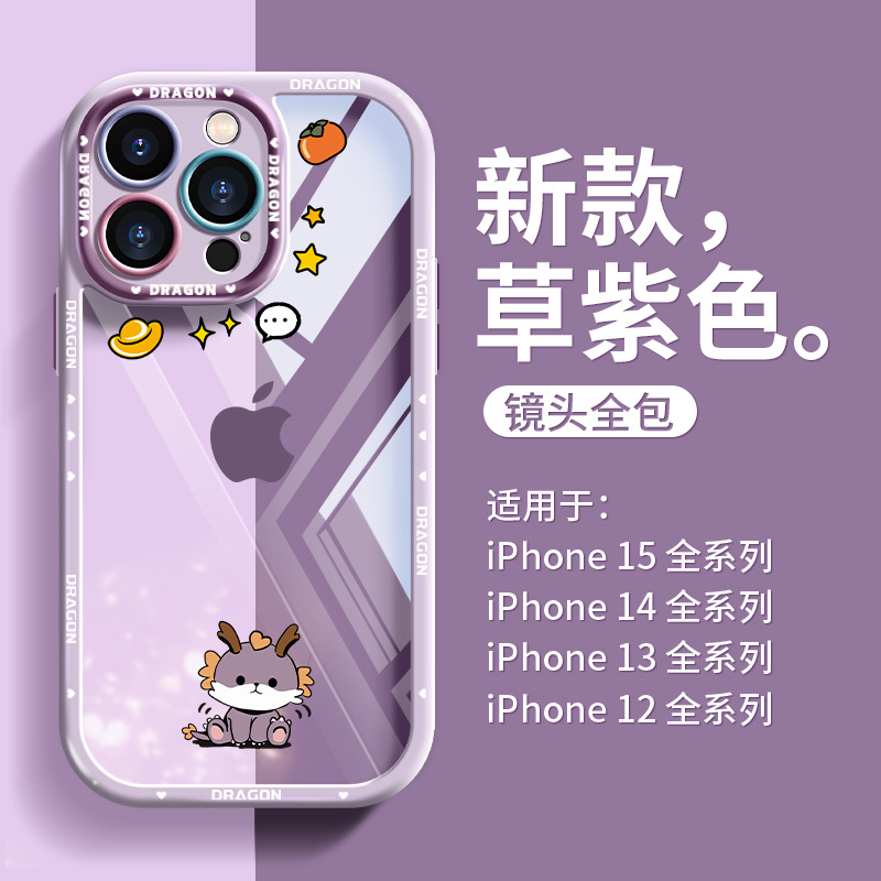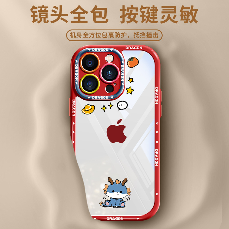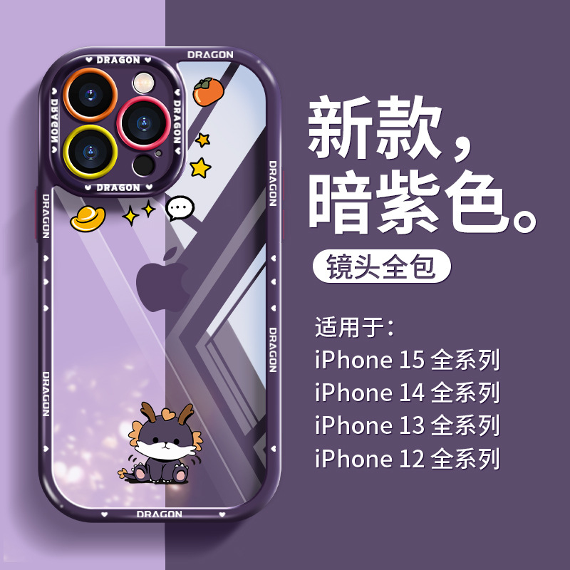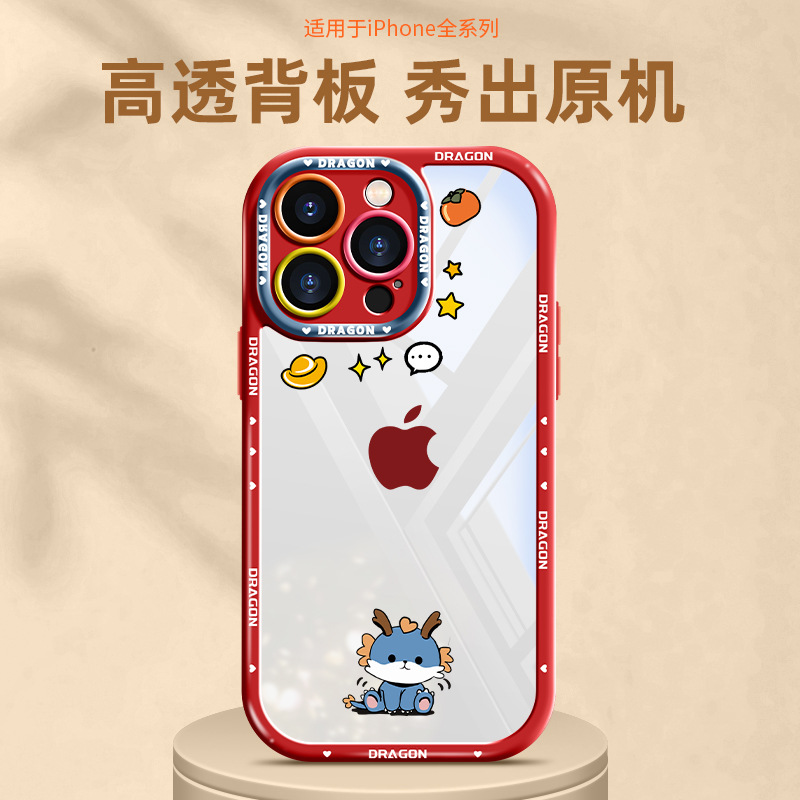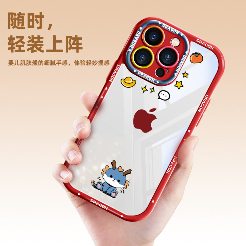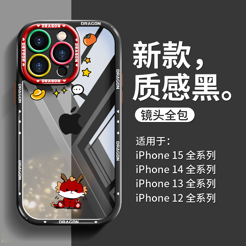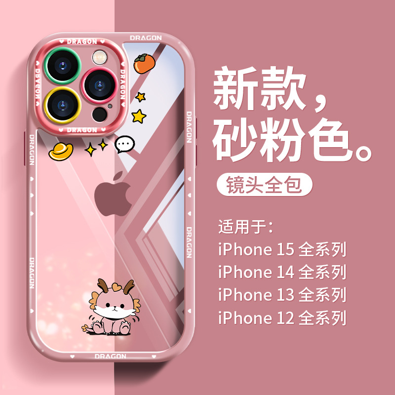 可爱小龙适用于苹果15Pro手机壳新款透明14Promax全包保护套15创