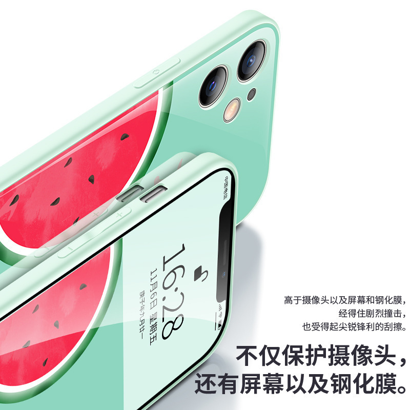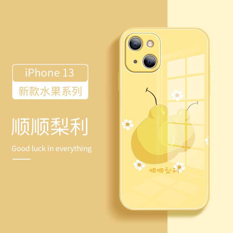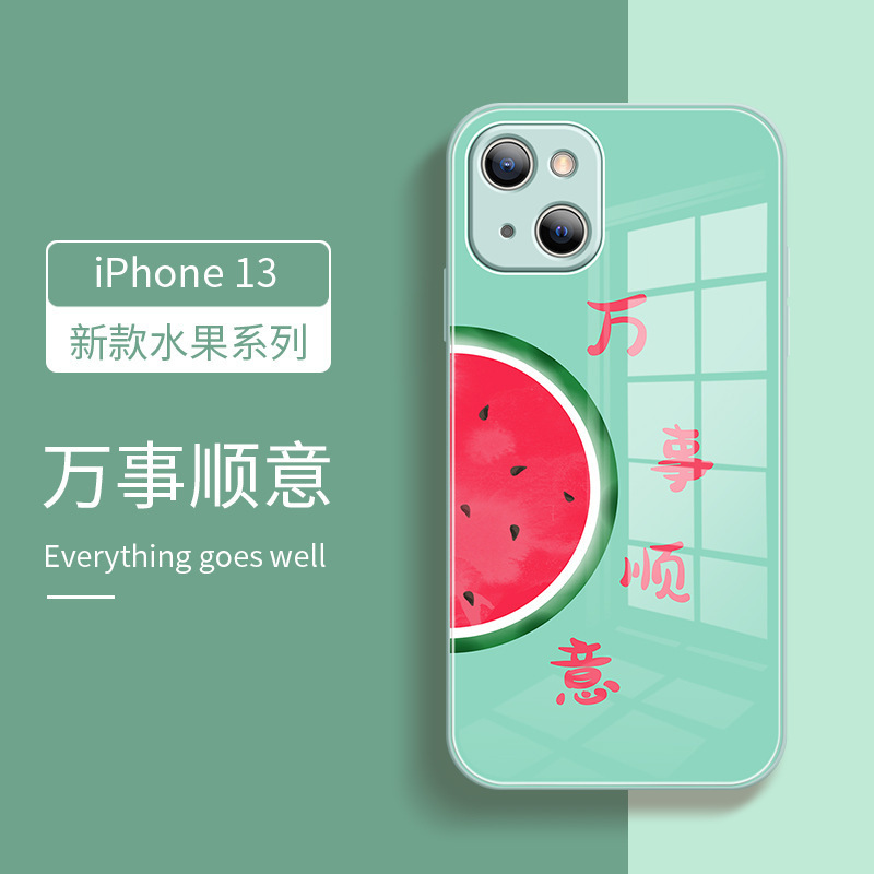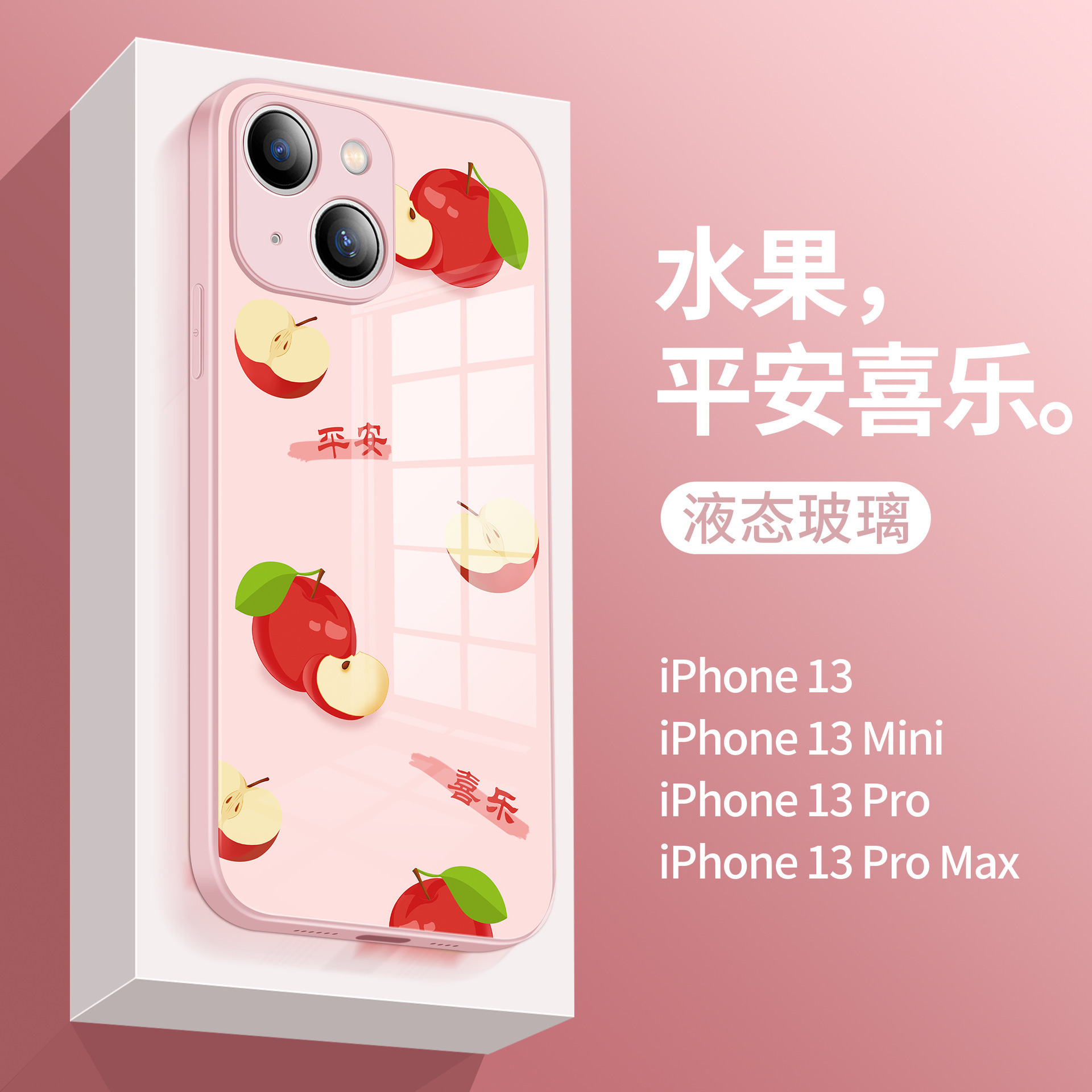 适用于液态玻璃苹果13手机壳原创iPhone12水果硅胶清新11promax