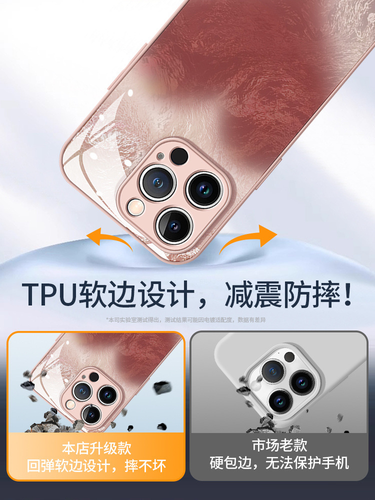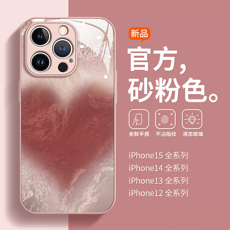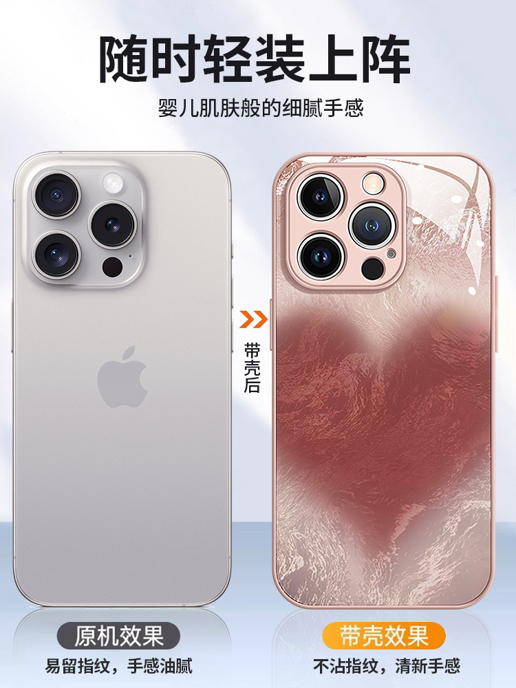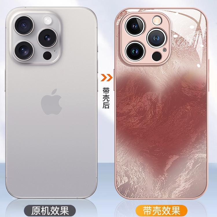 适用于苹果16手机壳锡纸纹高颜值爱心全包iphone16Promax玻璃小香
