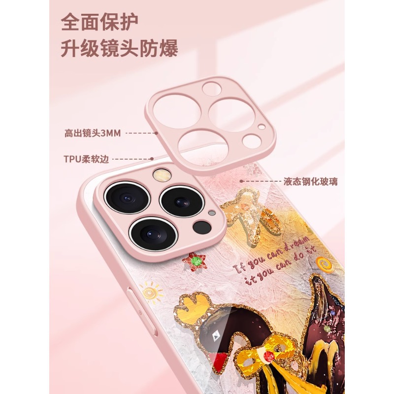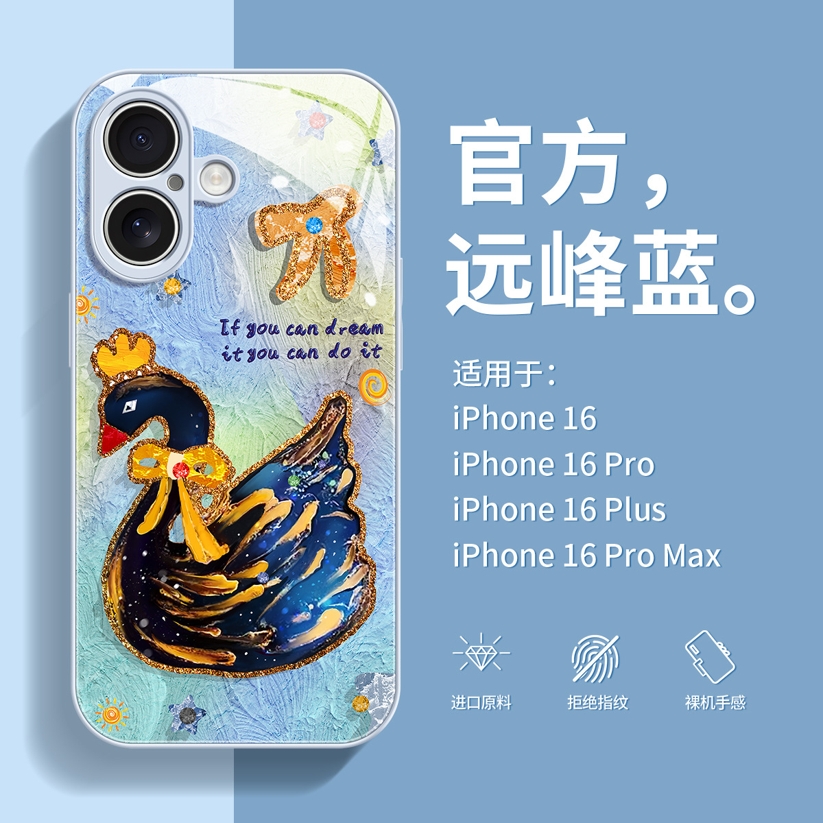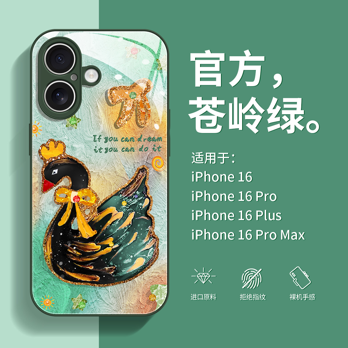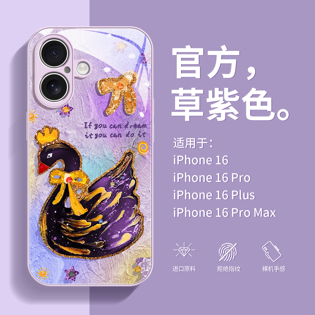 适用于苹果16Promax手机壳卡通%黑天鹅随机词1%全包iphone15玻璃