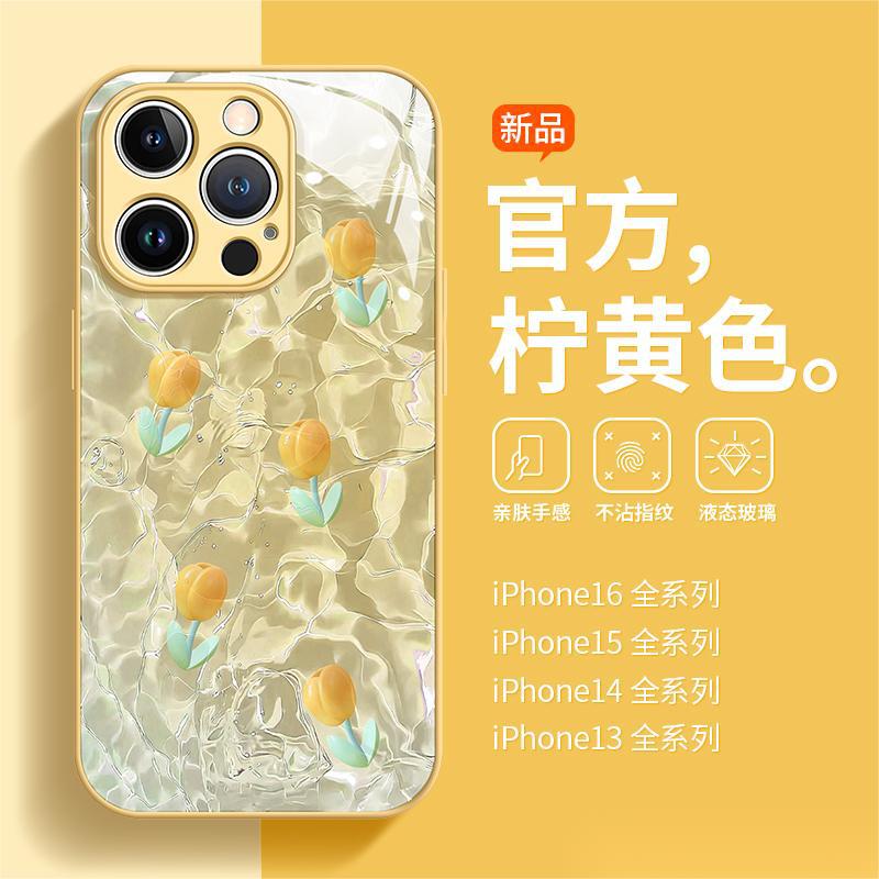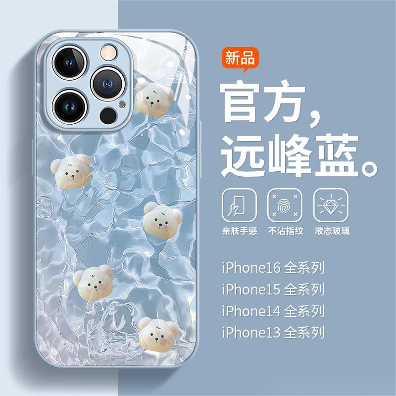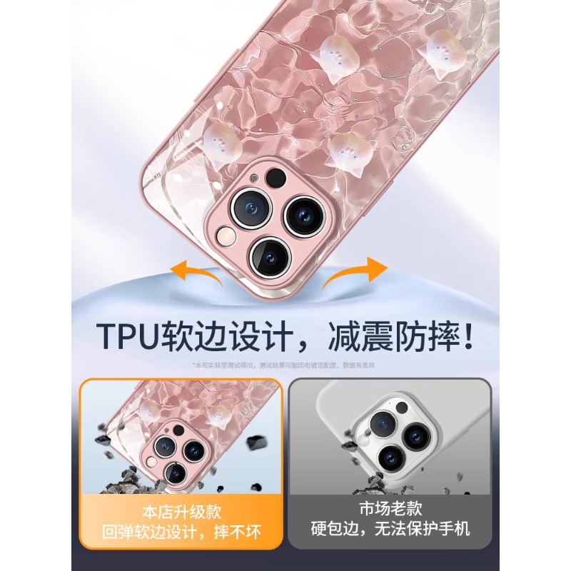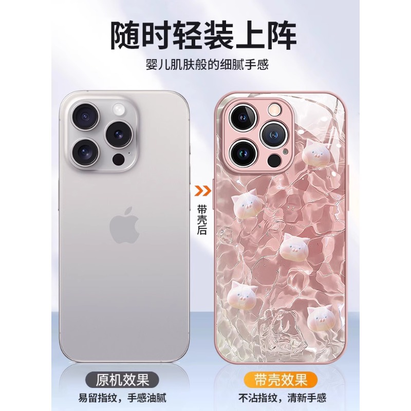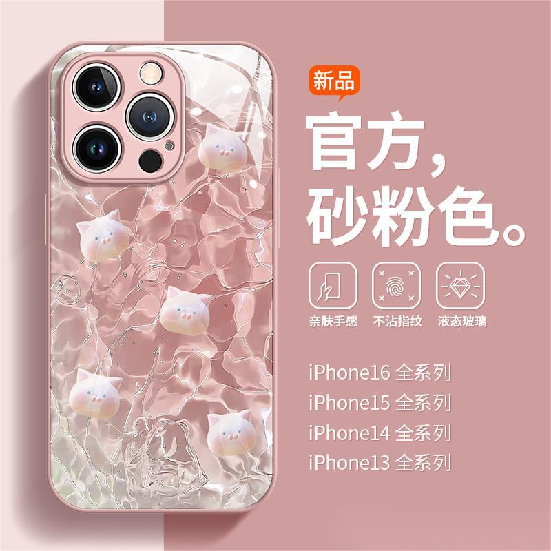 适用于苹果16Promax手机壳少女心水波纹全包iphone13玻璃耐脏防摔