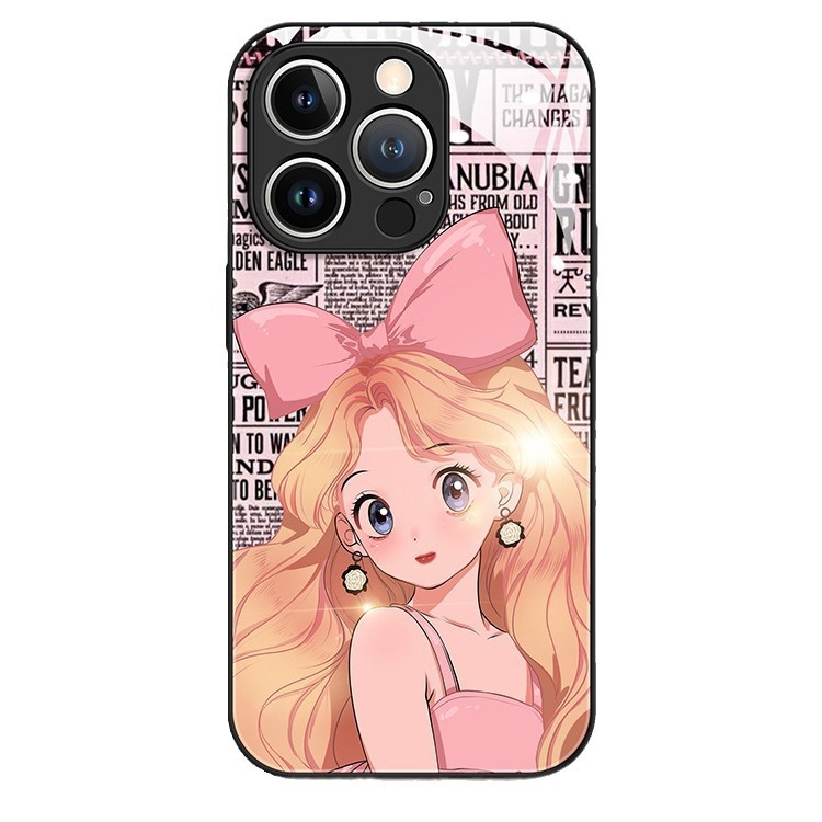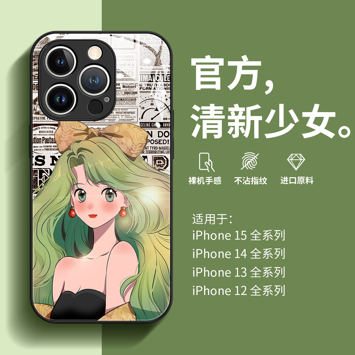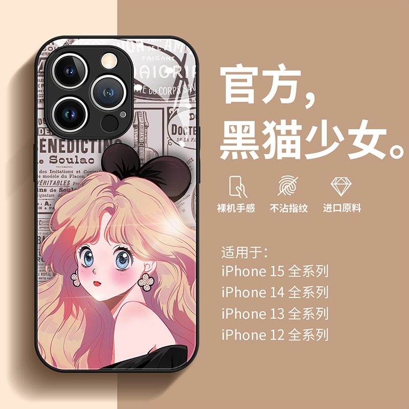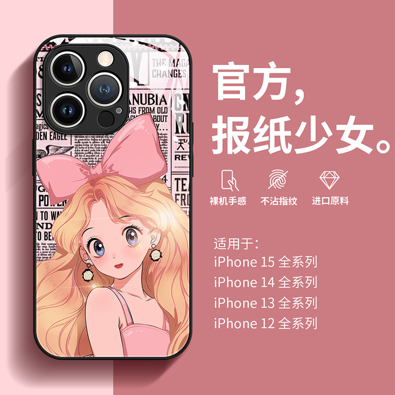 适用于苹果15手机壳新款15promax时尚女孩iphone14pro镜面玻璃13/