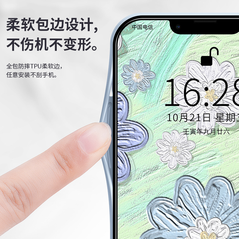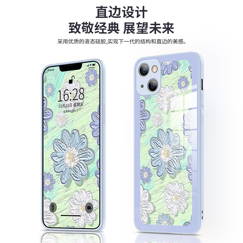 小众ins风适用于苹果14新款手机壳iPhone14pro max油画立体13网红