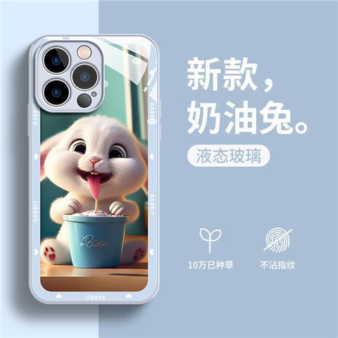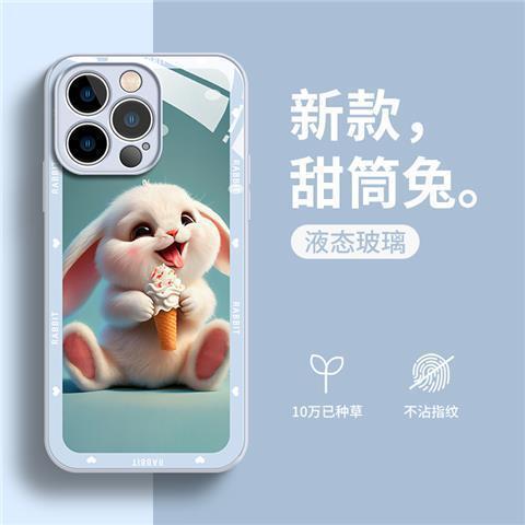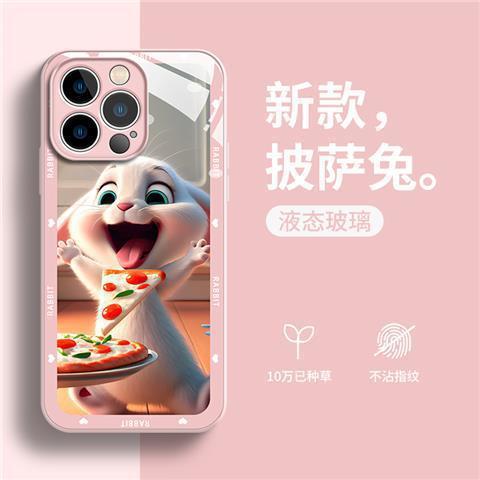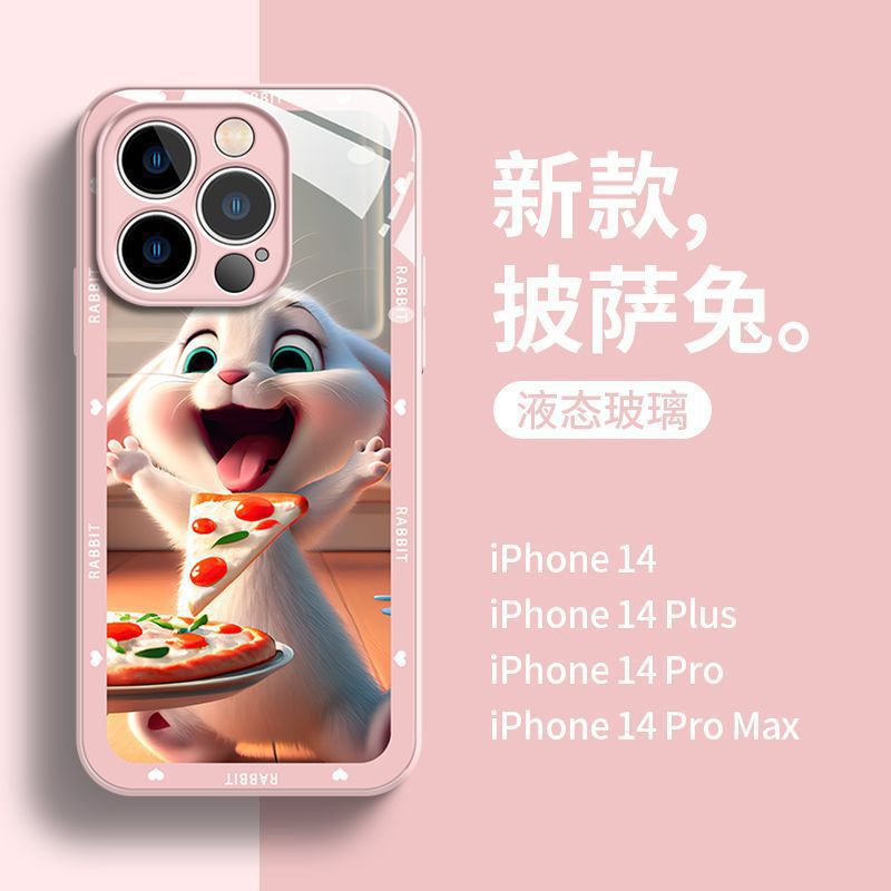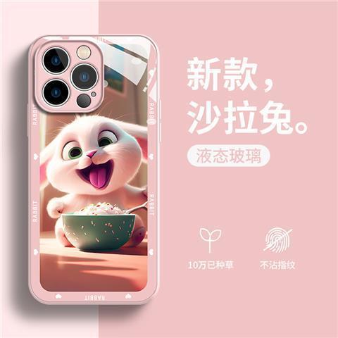 沙拉兔苹果14手机壳女款iphone13pro粉色玻璃全包12防摔11