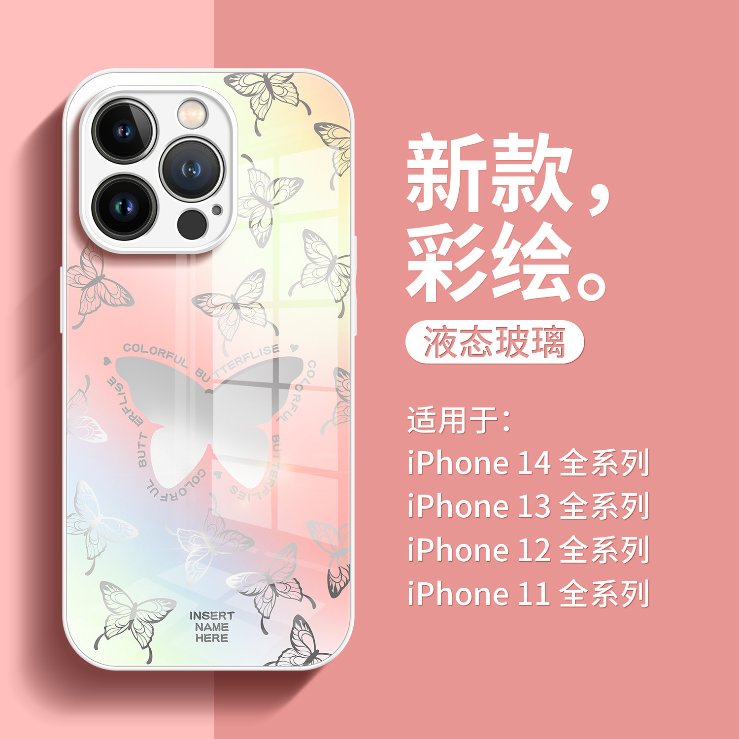 小众新款适用于iPhone14手机壳渐变苹果13玻璃14promax网红潮牌12