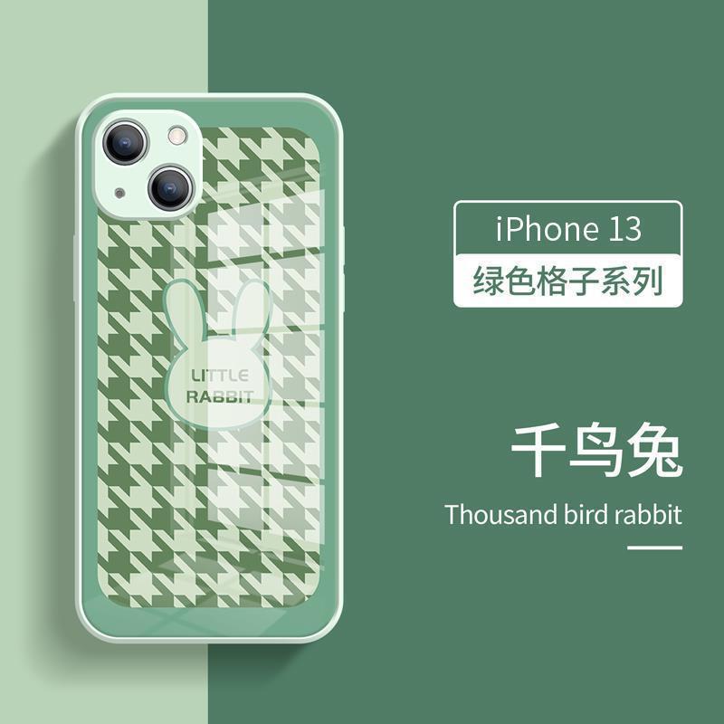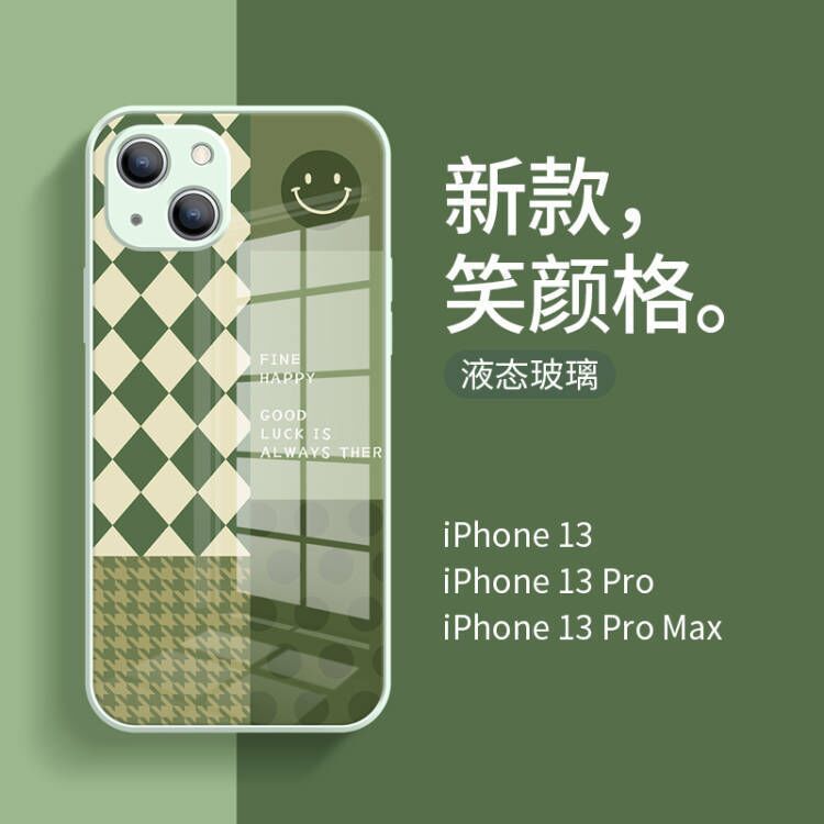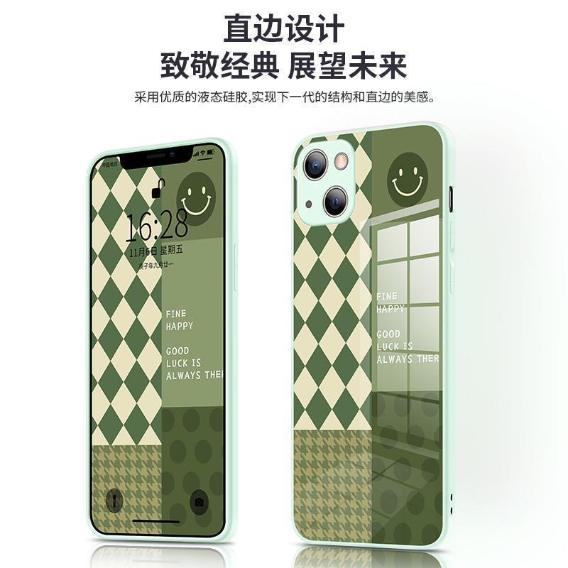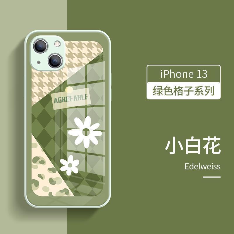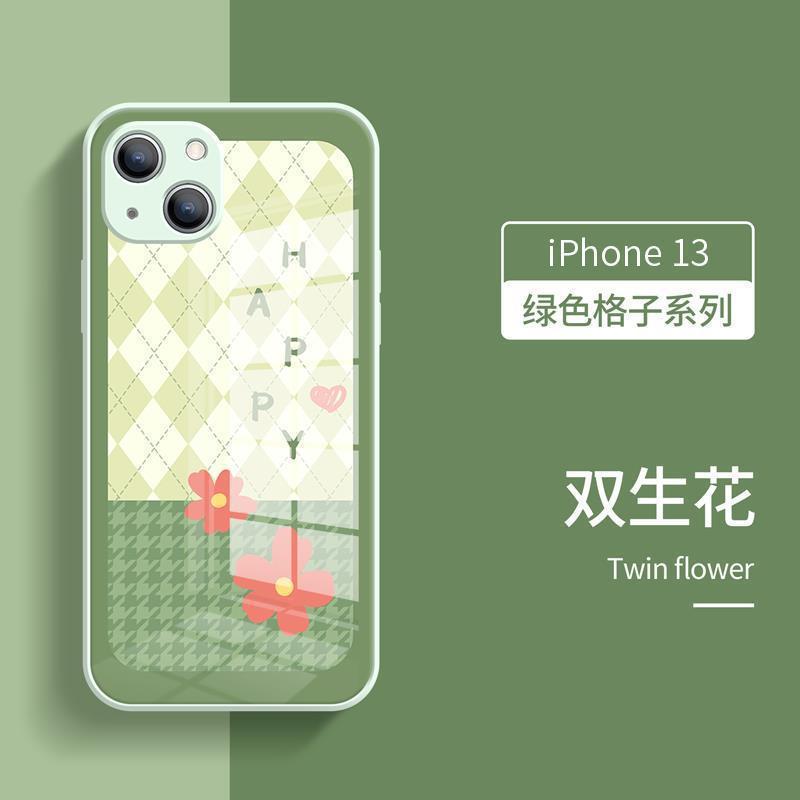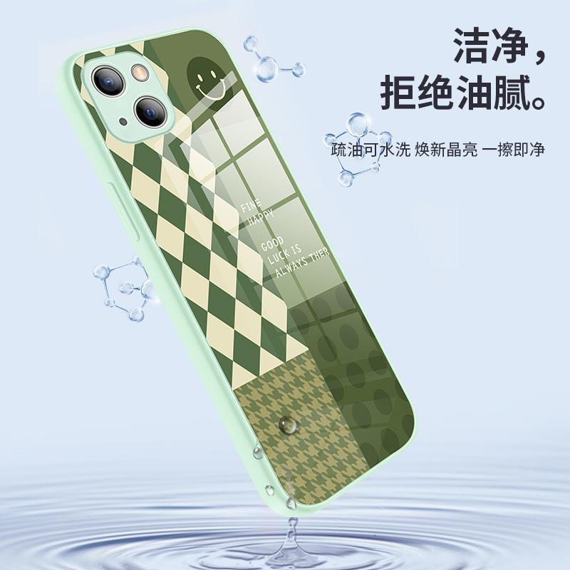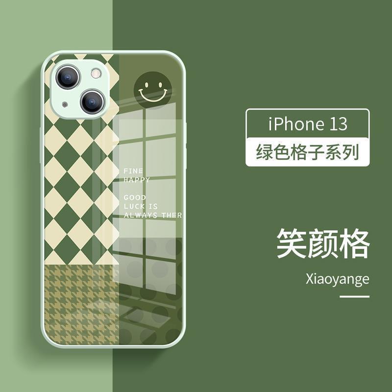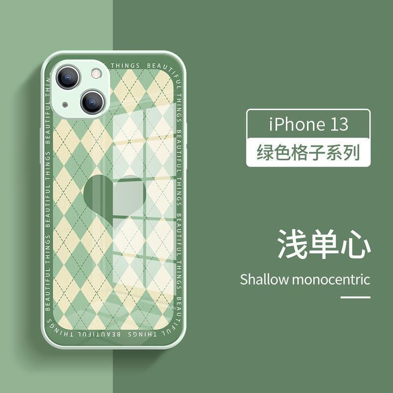 iPhone13玻璃手机壳苹果13pro格子爱心12/11小清新xs/xsmax防摔潮