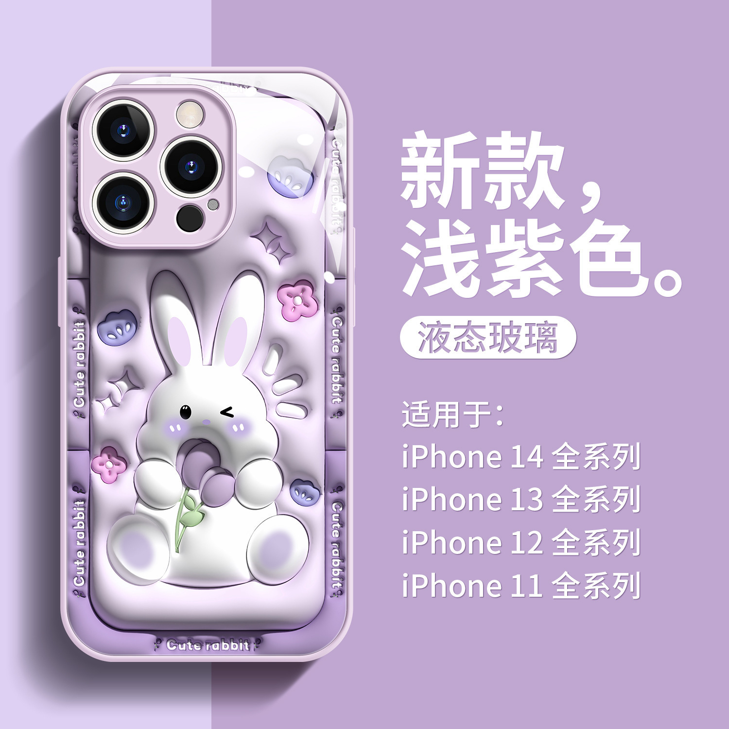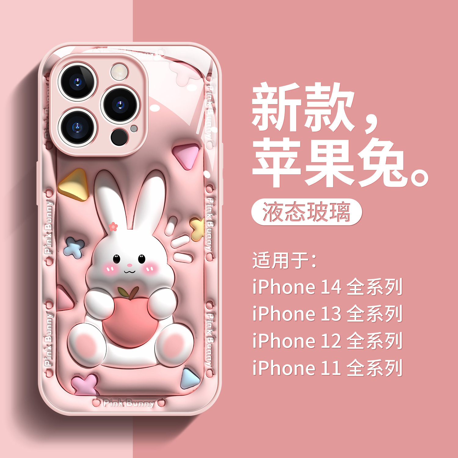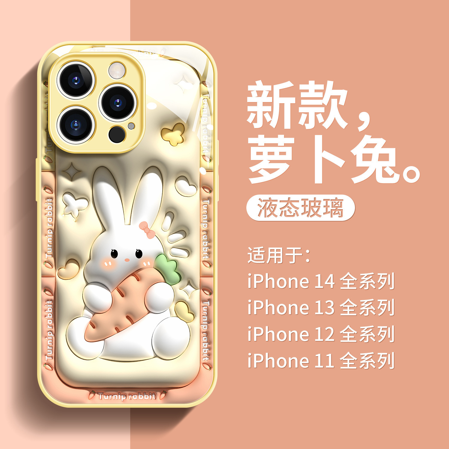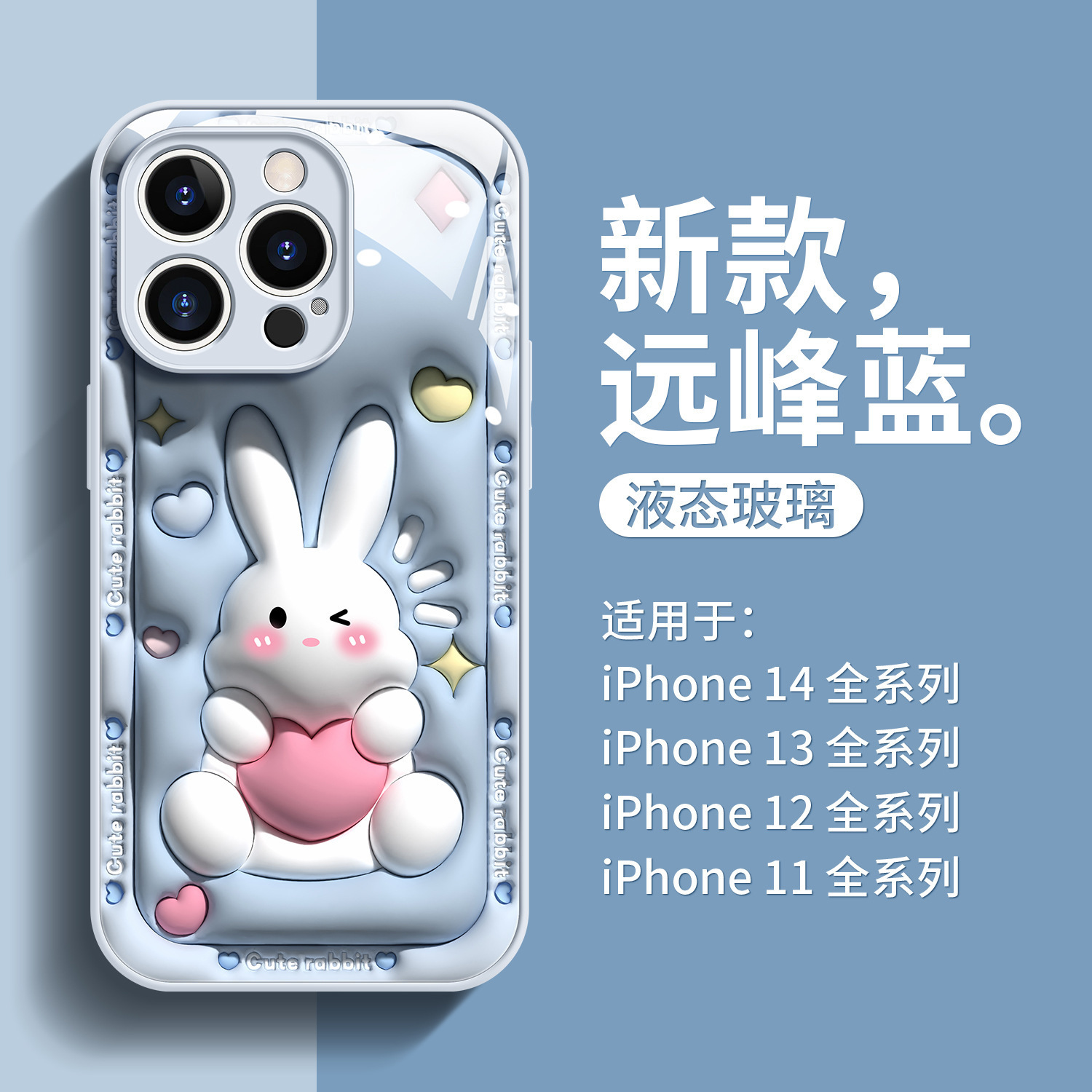ins风淡青色适用于苹果14Pro手机壳直边玻璃iPhone14防摔创意女13