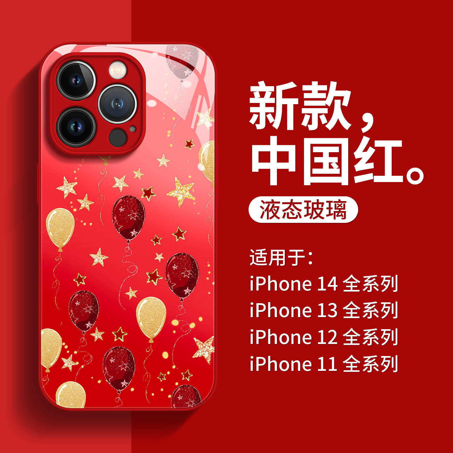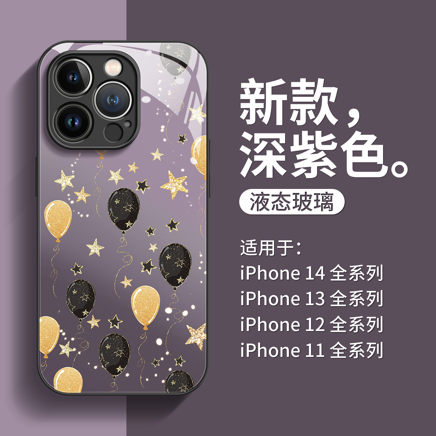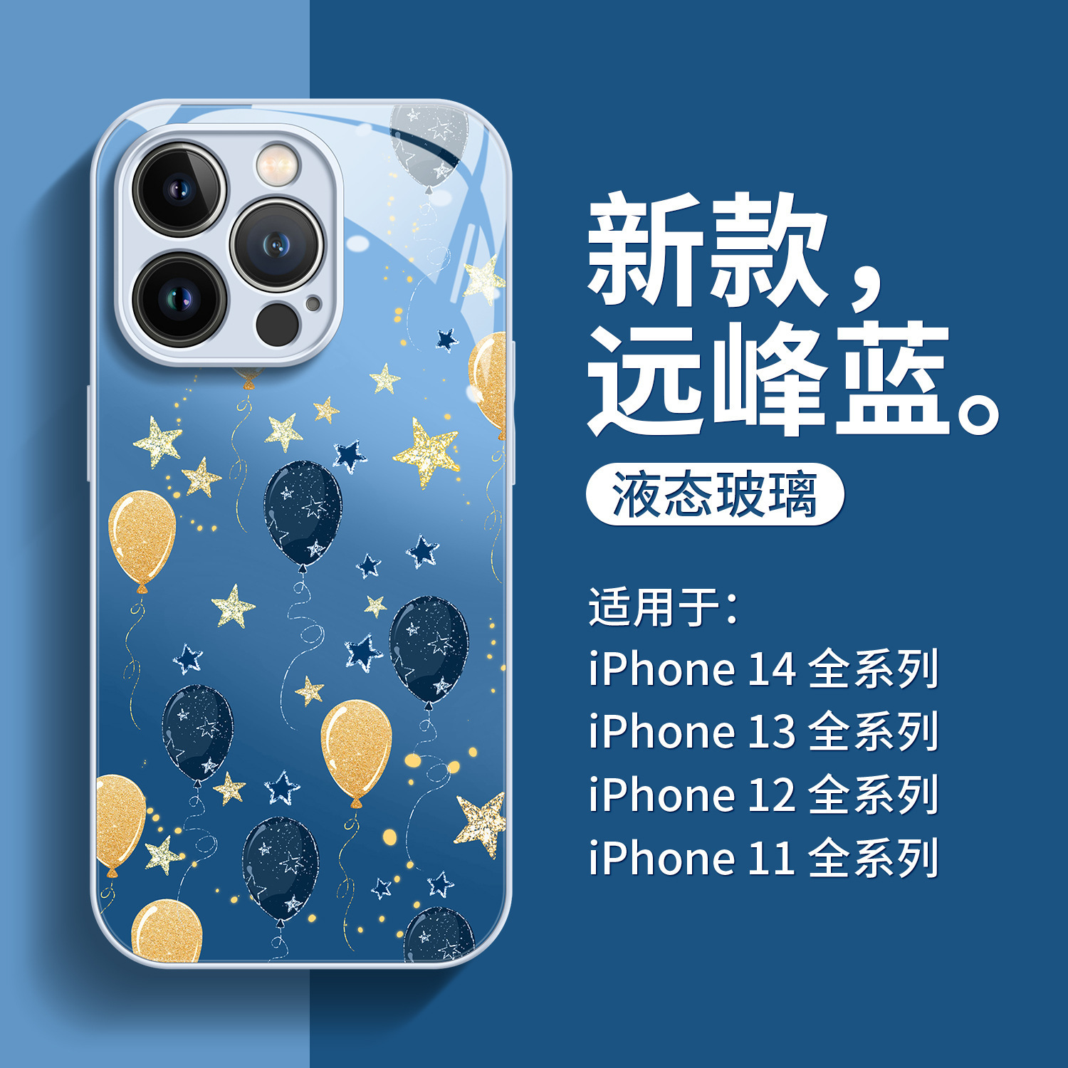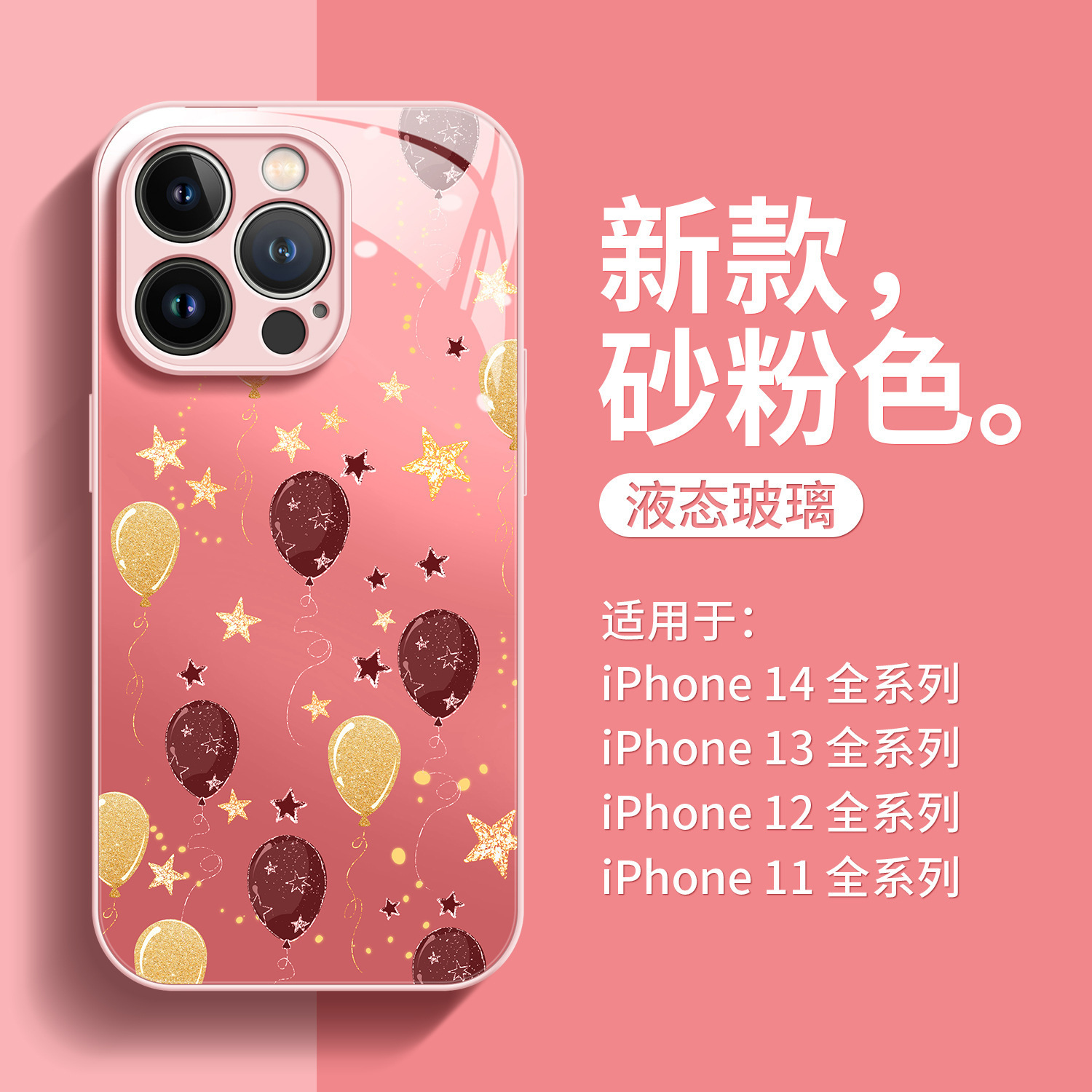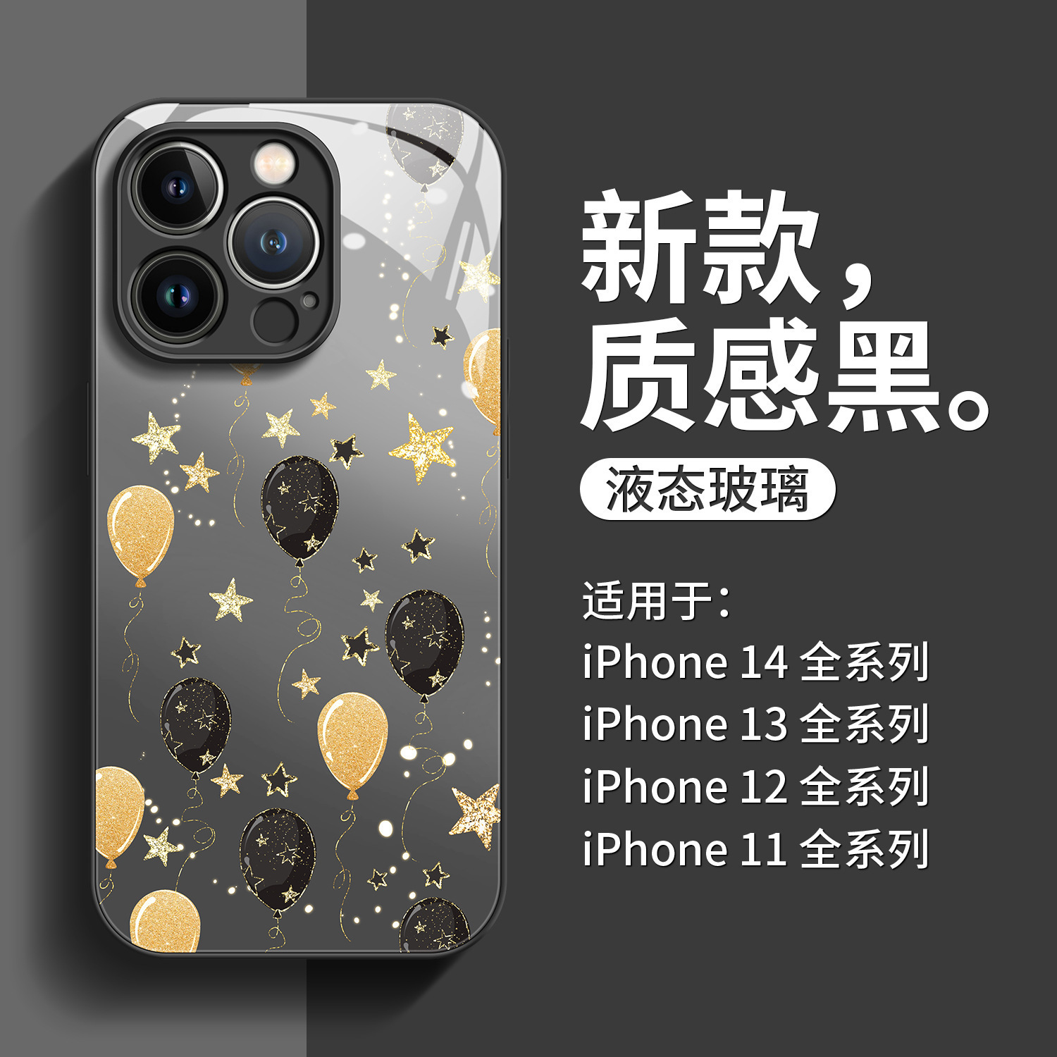 潮流新款适用于苹果14新款手机壳液态玻璃14promax简约iPhone13防