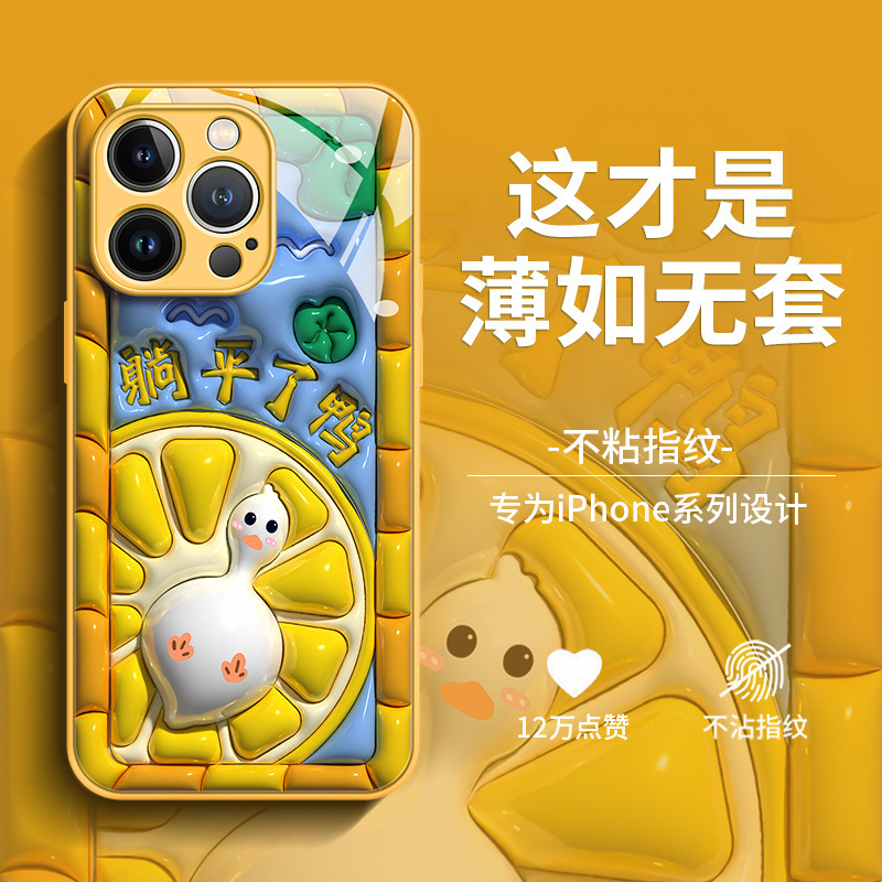 晚安鸭适用于苹果14手机壳网红爆款苹果13可爱创意iPhone12/11Pro