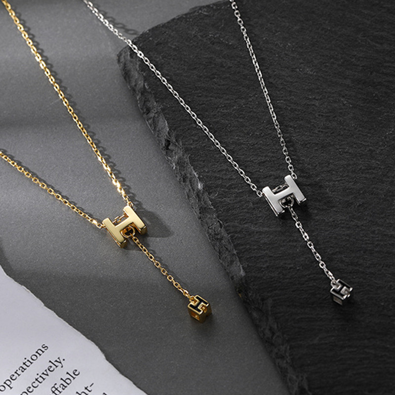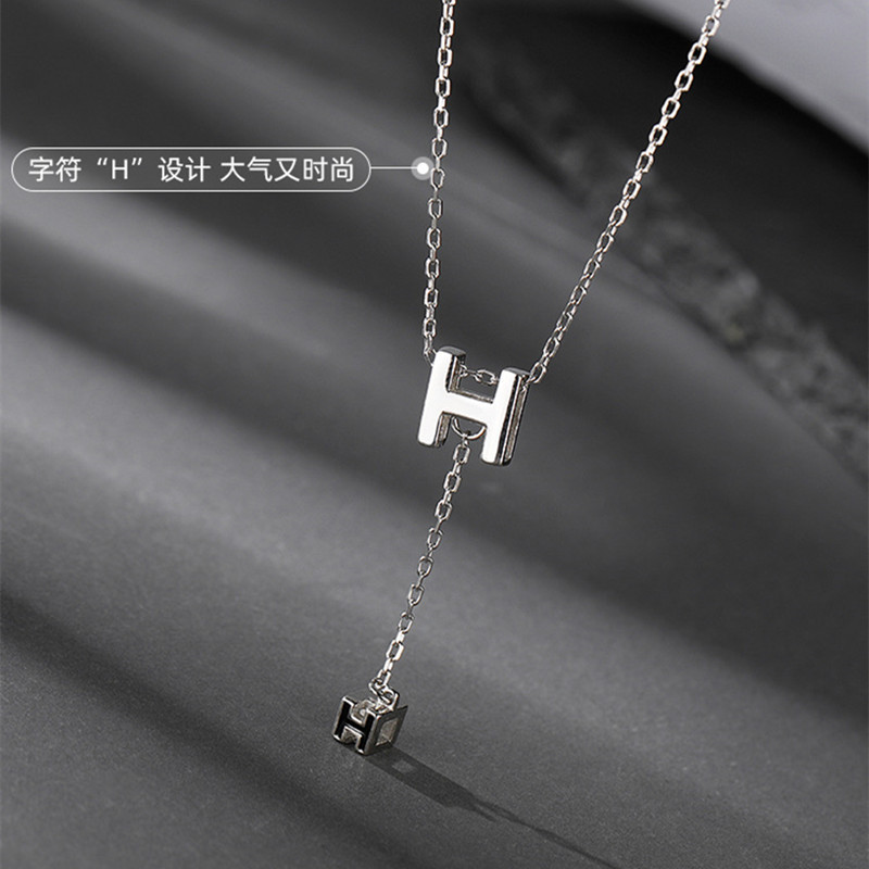 方行s925纯银H英文字母项链女百搭潮小众设计流苏吊坠锁骨链ins风
