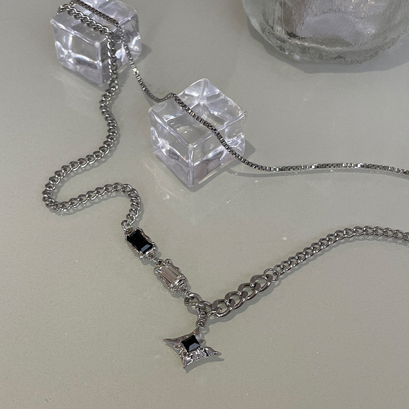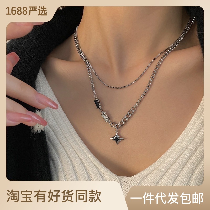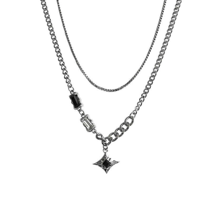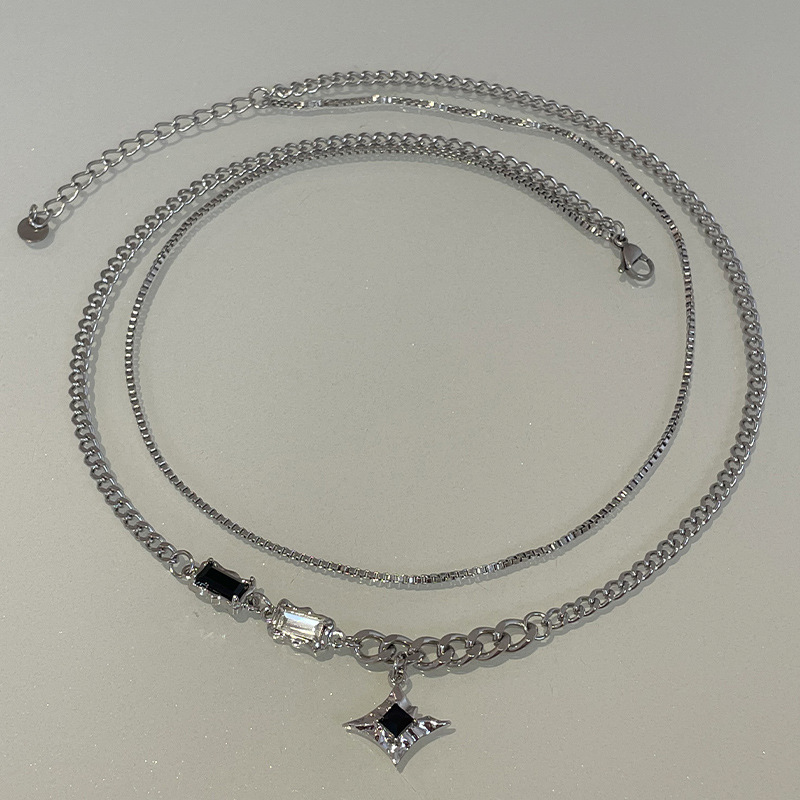 小众设计星芒方钻双层项链女轻奢ins嘻哈潮酷配饰高级吊坠锁骨链