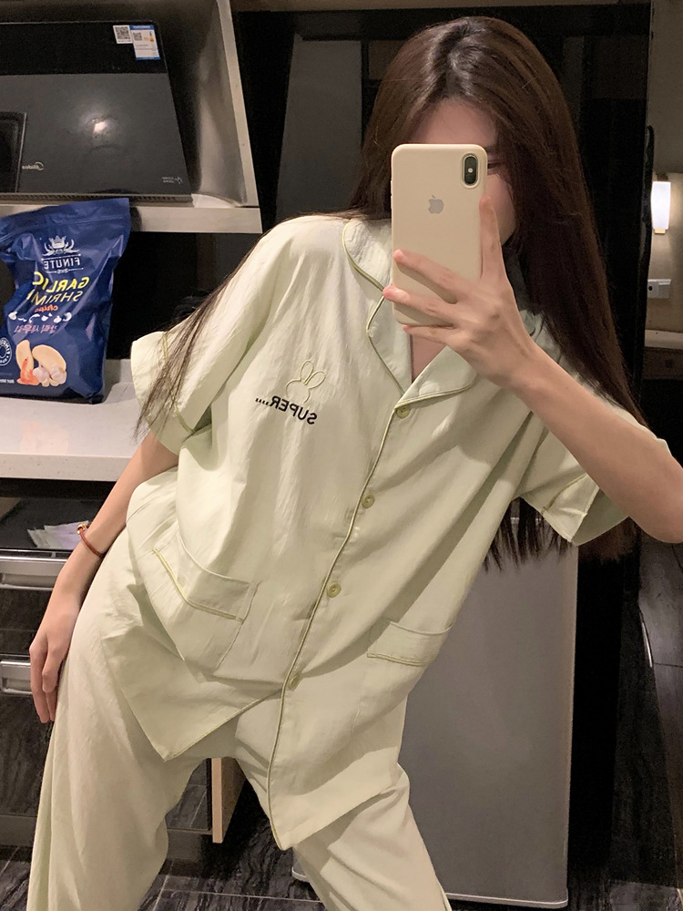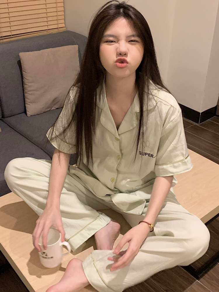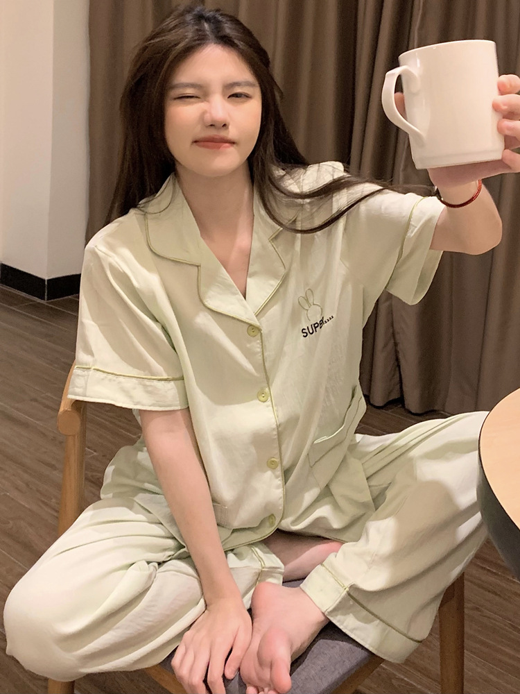 睡衣女夏天休闲短袖长裤两件套装新款韩版可外穿高级感学生家居服