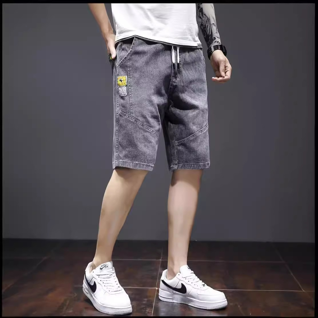 牛仔短裤男港风潮牌宽松复古百搭直筒裤潮流帅气七分裤子夏季薄款