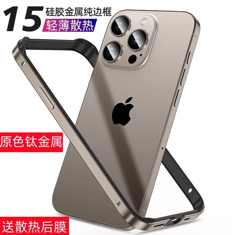 直边四角防摔适用iPhone15铝合金边框手机壳苹果14防摔金属保护套