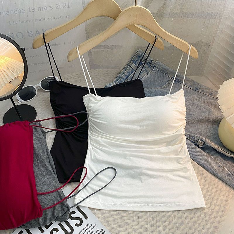 打底短款背心小吊带女夏2025年新款韩版褶皱修身上衣