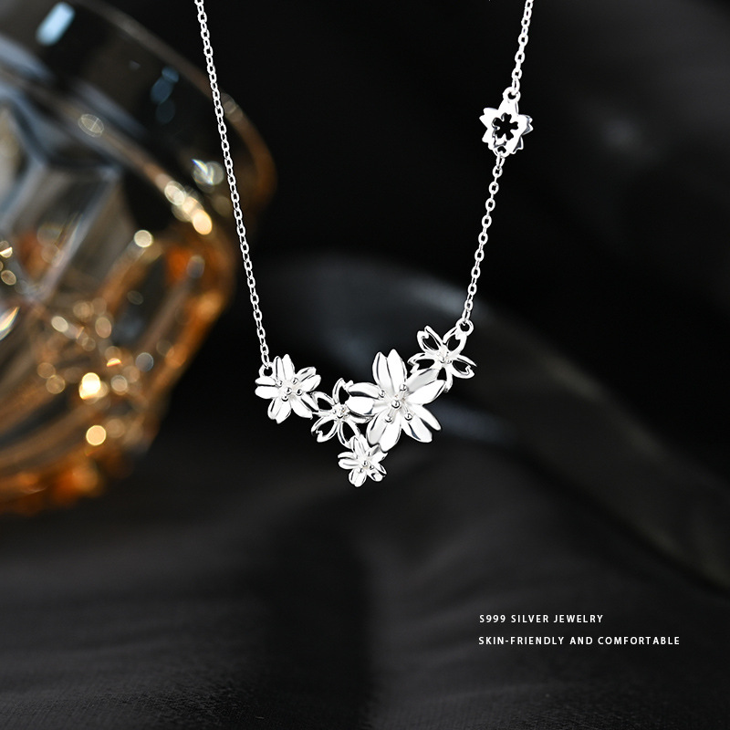 阿宝S999足银花朵项链轻奢高级感镂空小众设计感时尚日常百搭颈饰