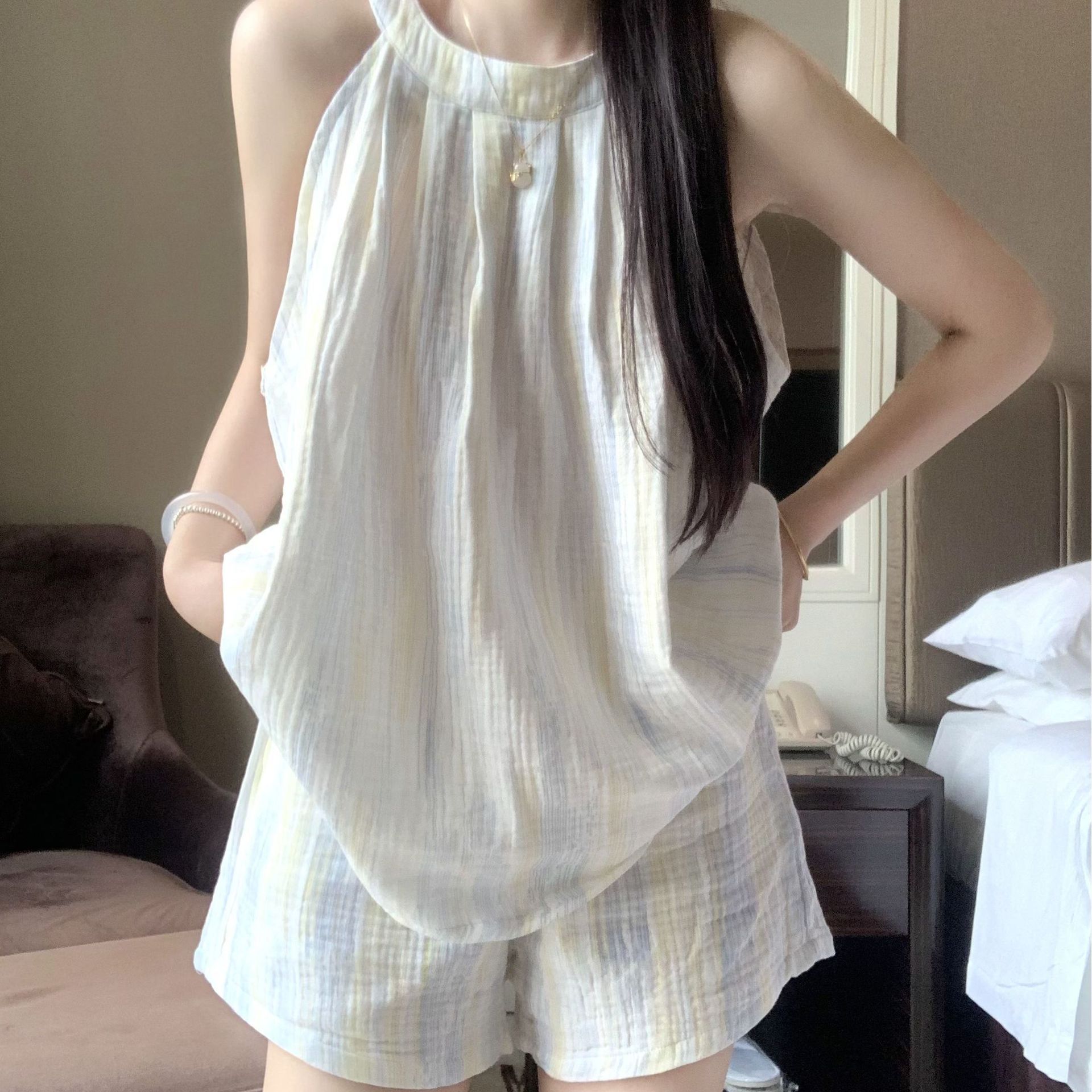 睡衣女ins风纯色年新款设计感短袖短裤网红高级感家居服套装