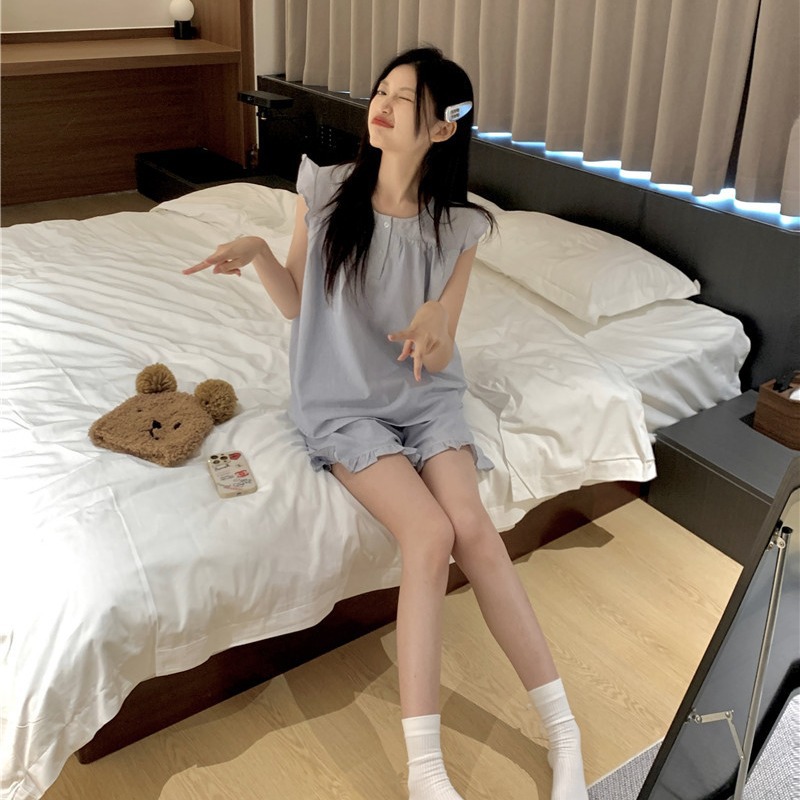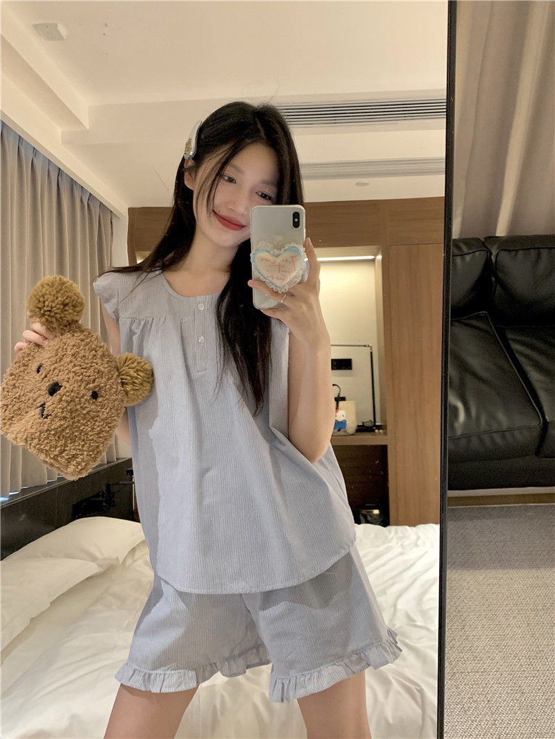 韩版简约背心式清凉可爱夏季学生宽松舒适外穿家居服两件套装