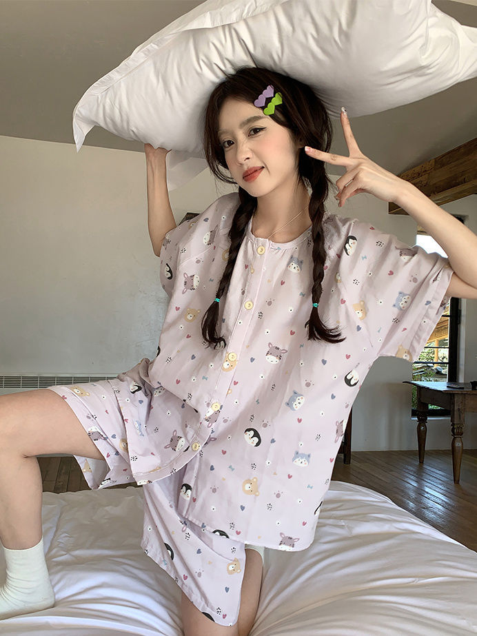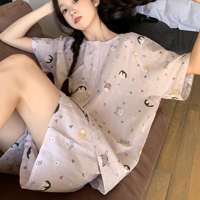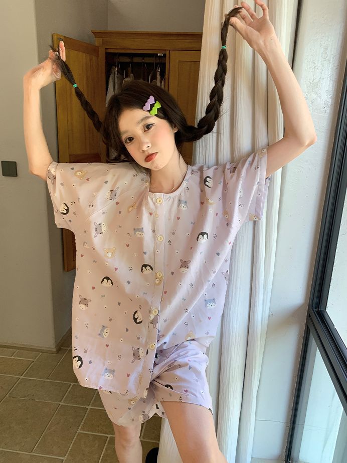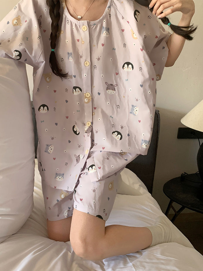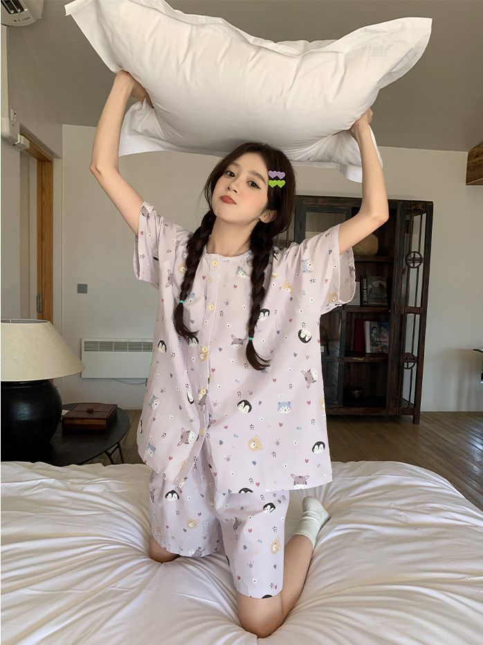 新款睡衣夏季短袖短裤套装可爱卡通企鹅公主风少女爆款家居服